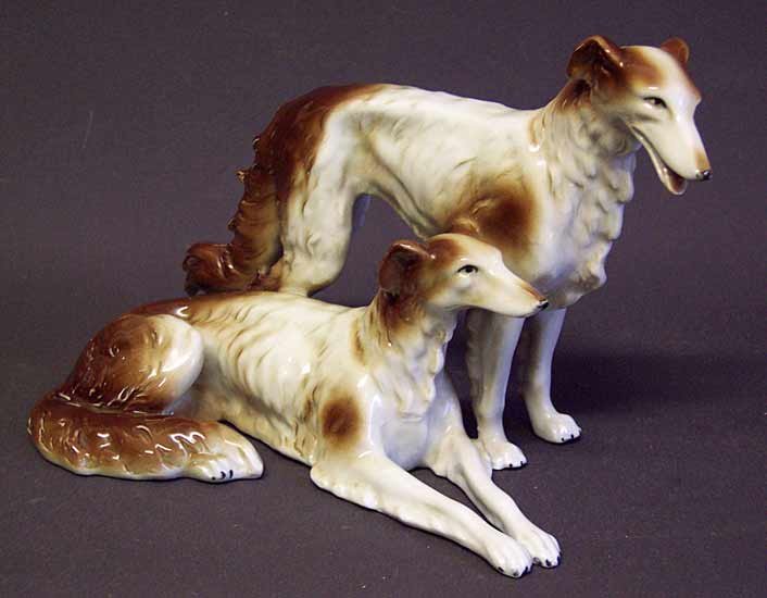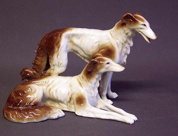 Windhunde, 2 Barsoi, Porzellan Carl Scheidig Gräfenthal Thüringen