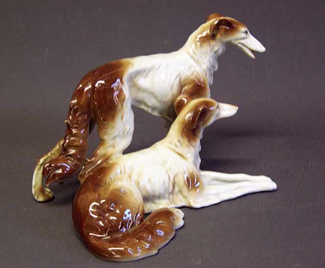 Windhundgruppe, 2 Barsoi. Manufaktur Carl Scheidig, Gräfenthal in Thüringen; 1930er Jahre.