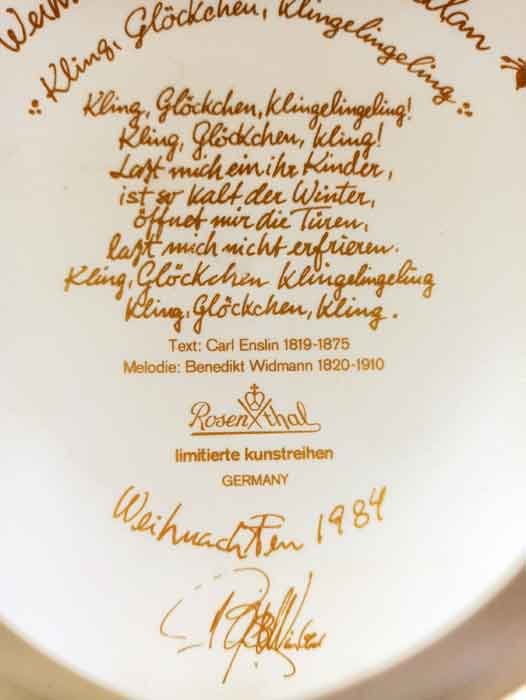 Bjørn Wiinblad für Rosenthal, Weihnachtsteller 1984. Weihnachtslieder auf Porzellan, "Kling Glöckchen...."