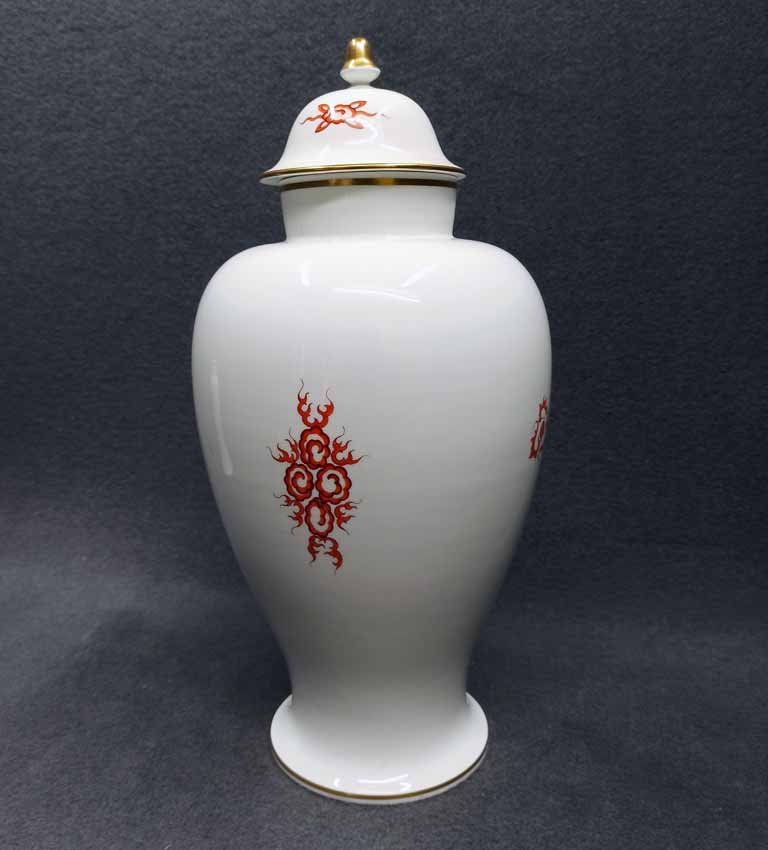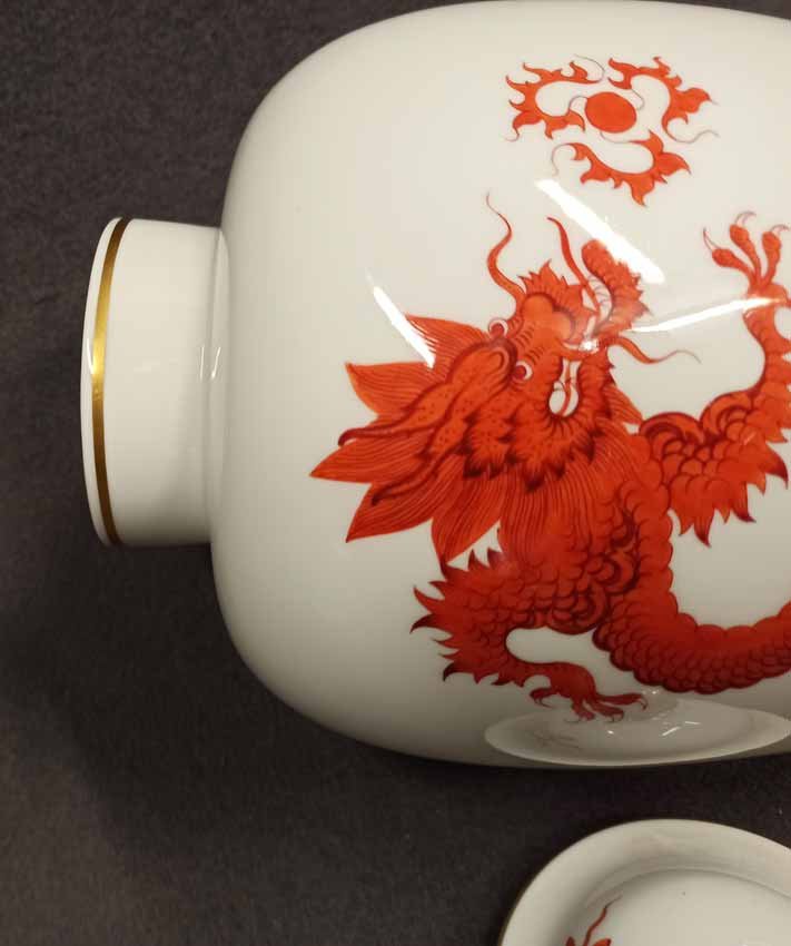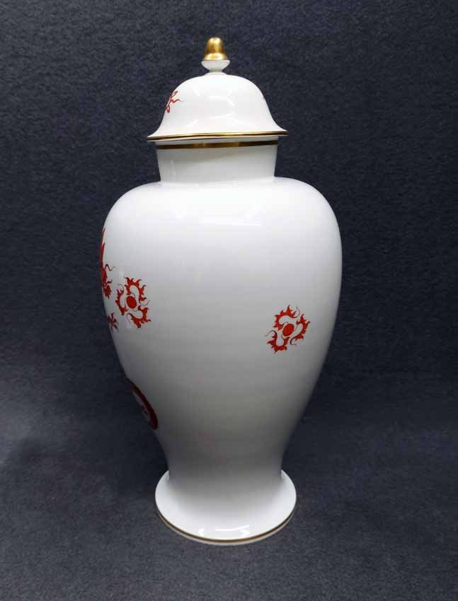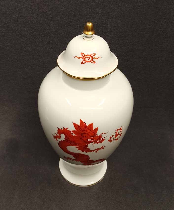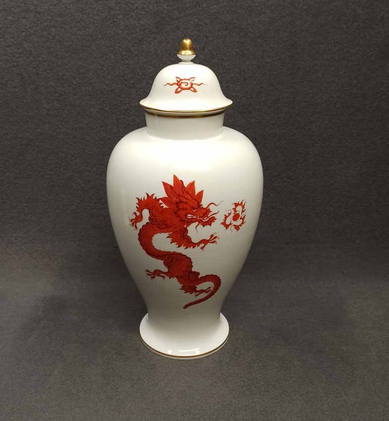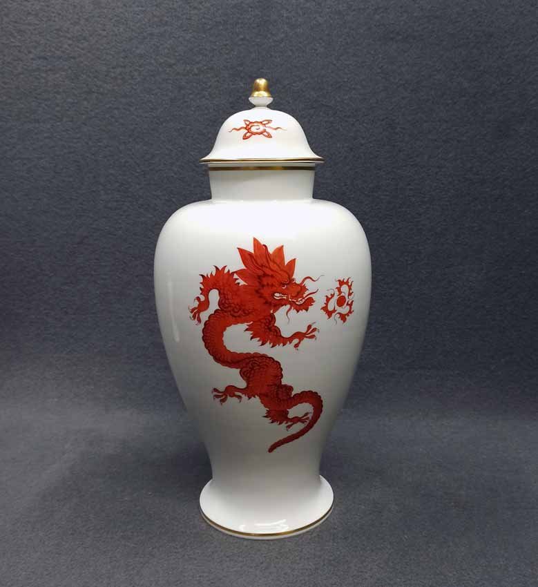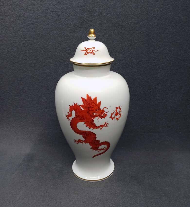Große Vase - Deckelvase, Manufaktur Meissen, Dekor Roter Drache.