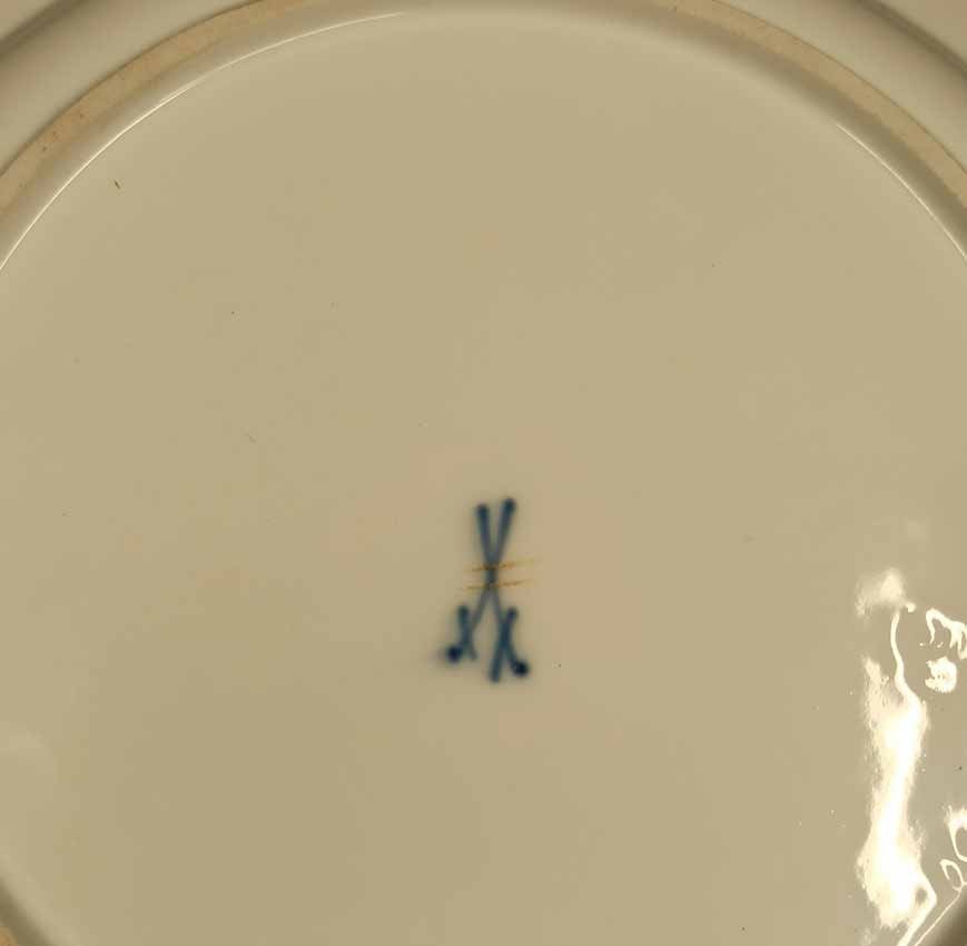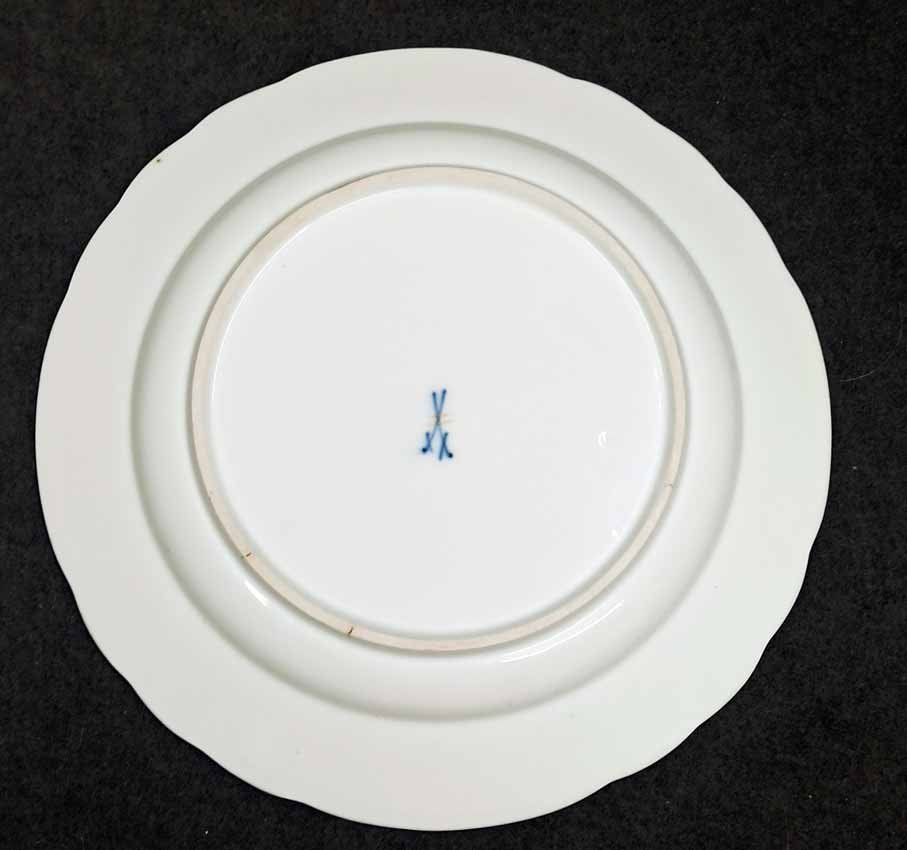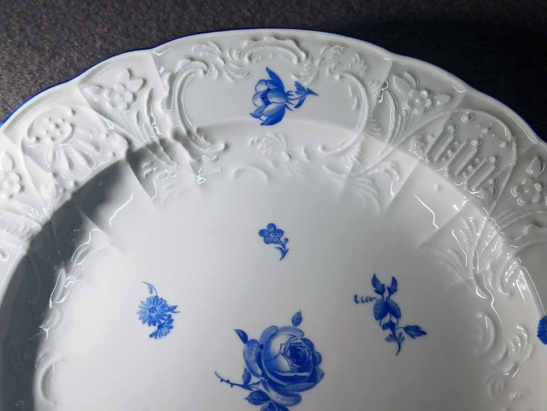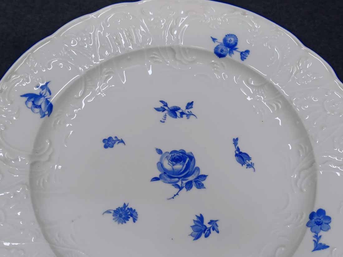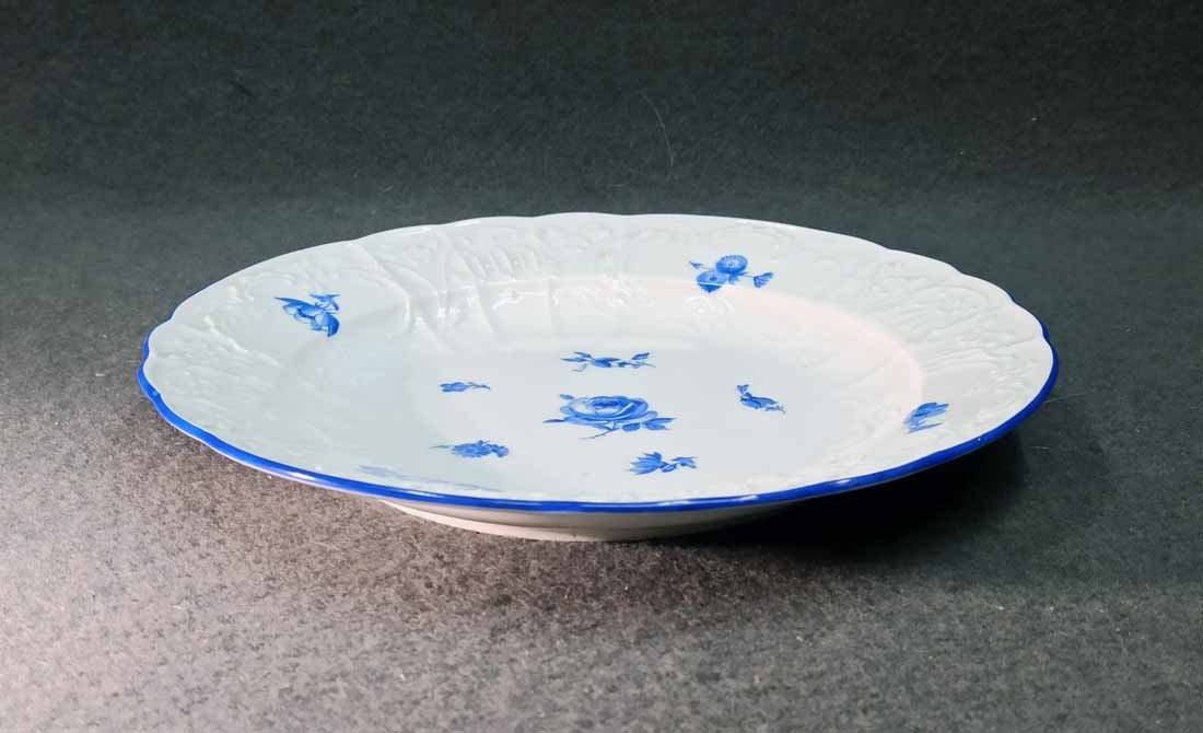 Meissen um 1880, gr. Teller Reliefrand, blaue Blumenmalerei, blauer Rand (2)