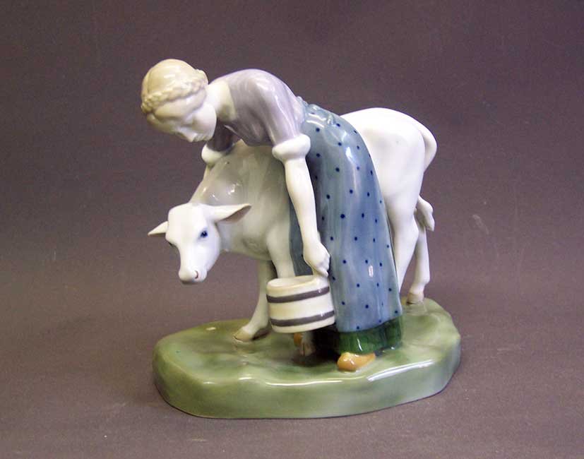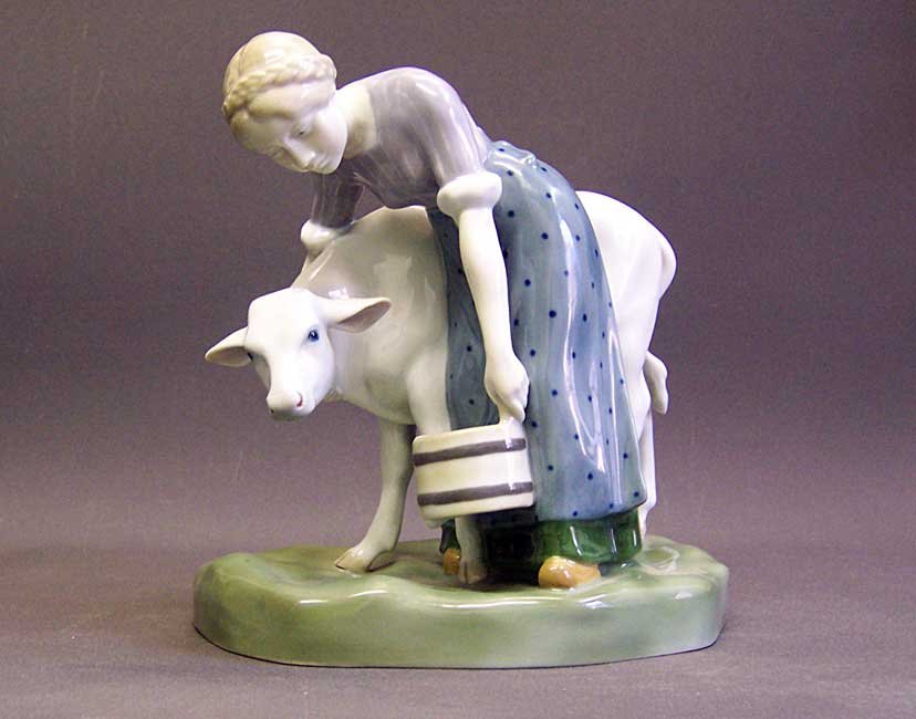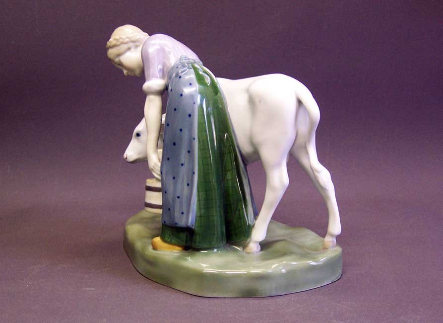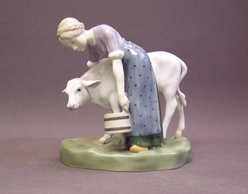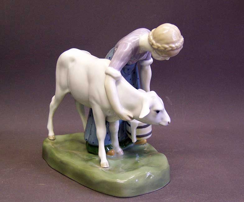 Porzellangruppe der Manufaktur Heubach; Mädchen mit Kalb, Entwurf: C.Brasch