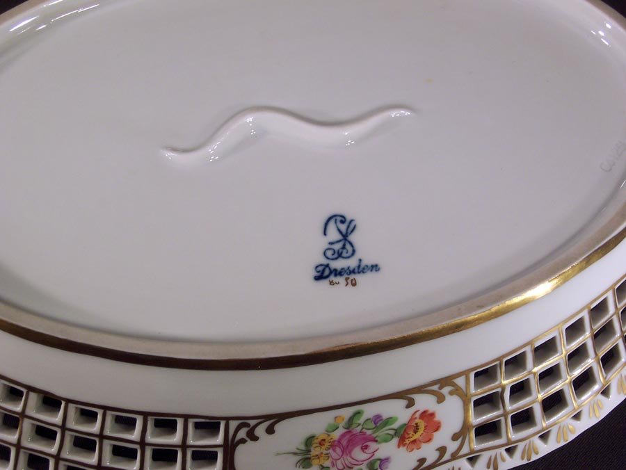 Gemarkt mit verschlungenem "SP" und "Dresden" für Säschsiche Porzellanmanufaktur Dresden.