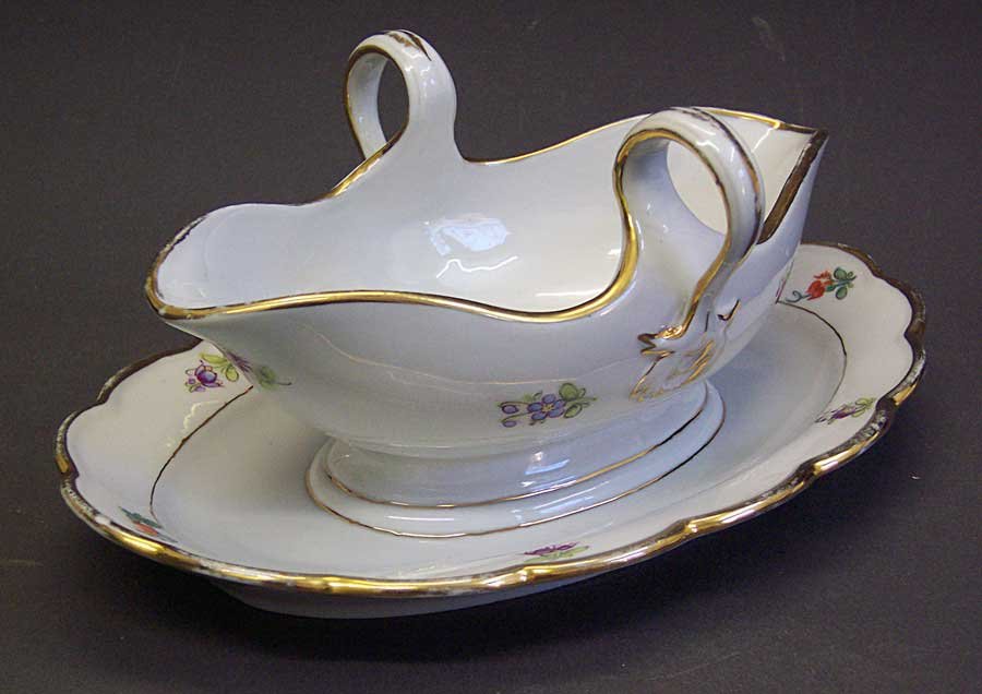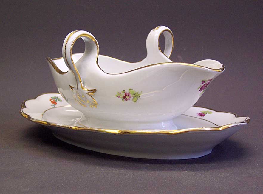 Teichert; Sauciere, Streublümchen, Gold. Seltene Pfeil Marke 1880-90