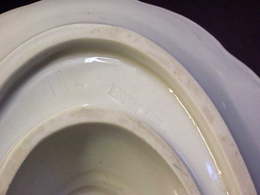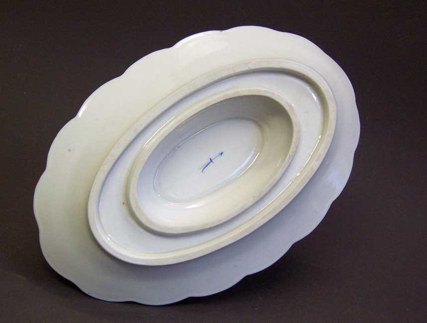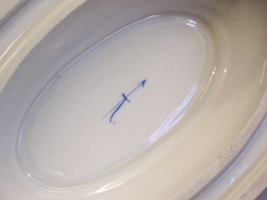 Gemarkt mit seltener Pfeilmarke in Unterglasurblau und geprägt „Cölln Meissen“ unterglasur.