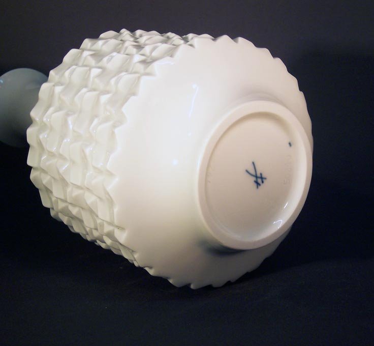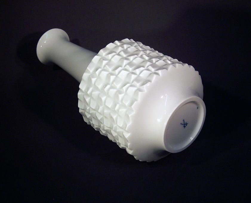 Vase, Meissen 1. Wahl; Entwurf von Ludwig Zepener. Weißes Porzellan mit moderner Relief Struktur.