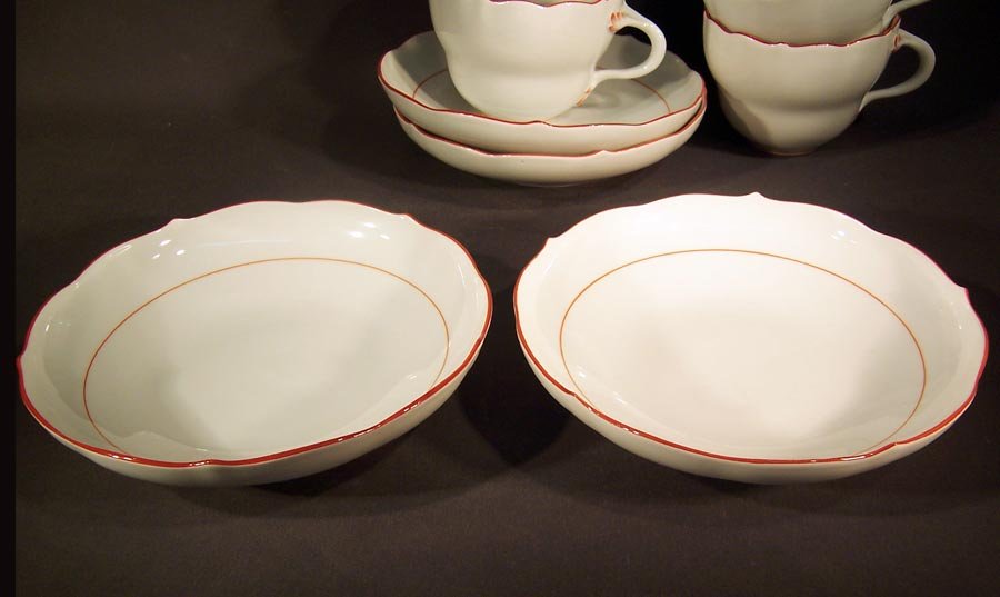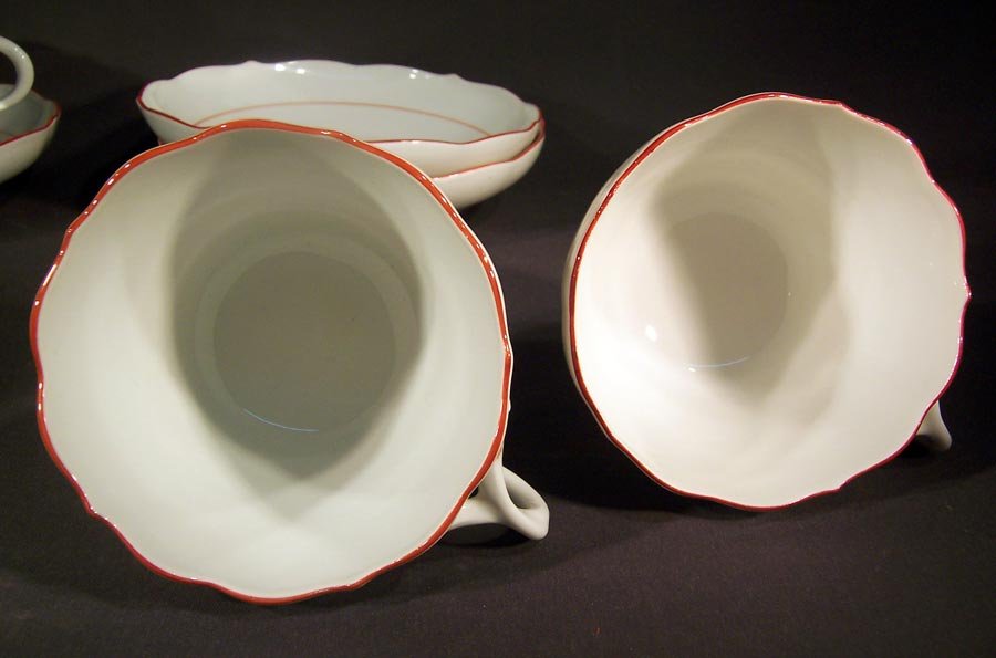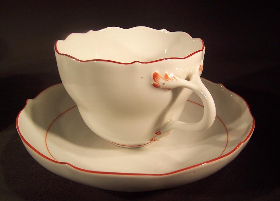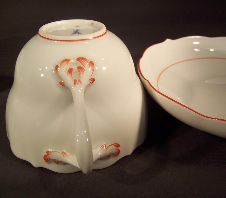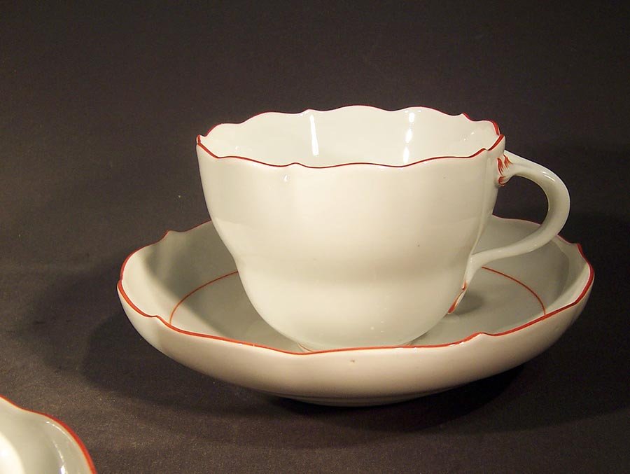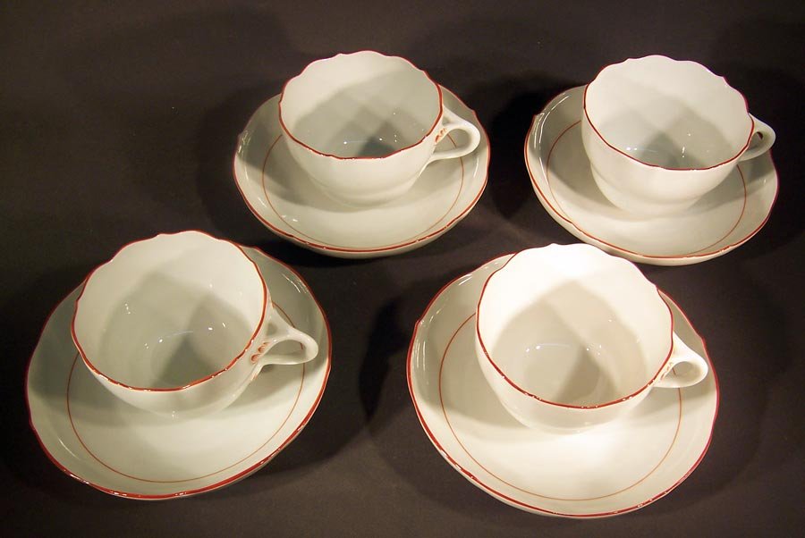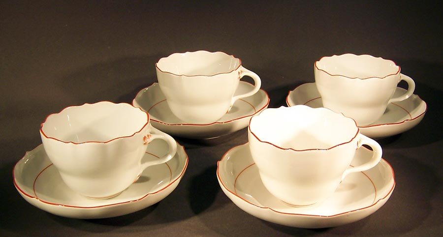 Vier Tassen und untertassen; Meissen, Rote Koralle.