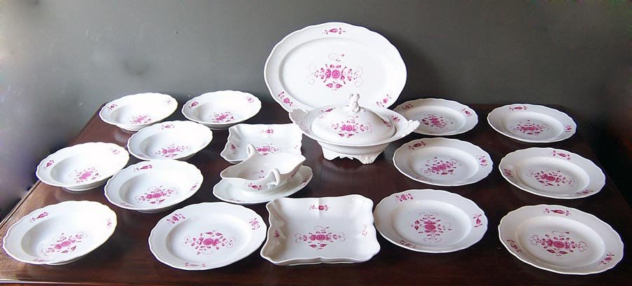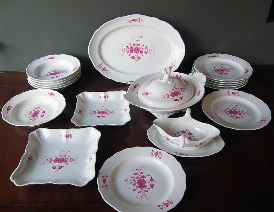 Meissen Service, Indisch Purpur 19.Jh. Speiseservice, 18 Teile