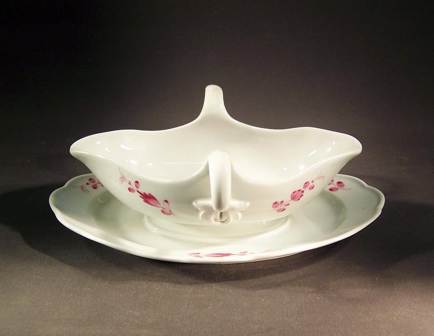 1 Sauciere L. 27 cm; B. 18,5 cm (kleine herstellungsbedingte Fehlstelle am Rand unter Glasur)