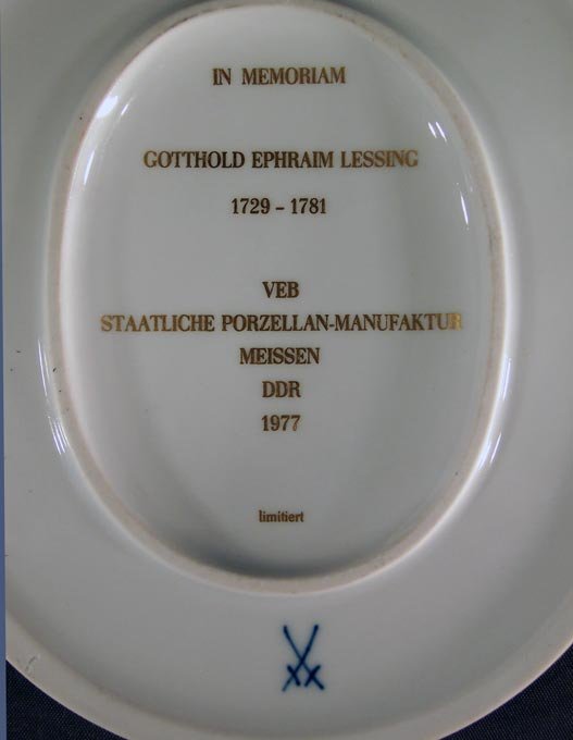 Meissen, Porzellan Wandbild "Gotthold Ephraim Lessing".