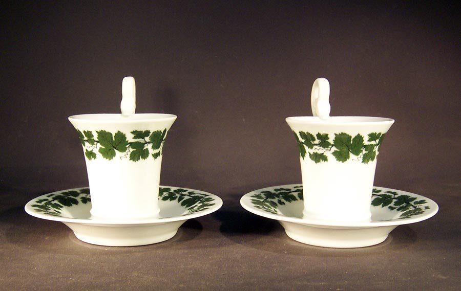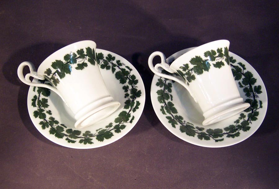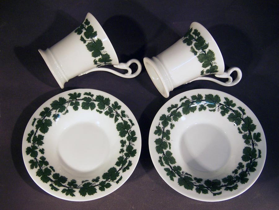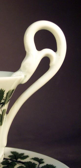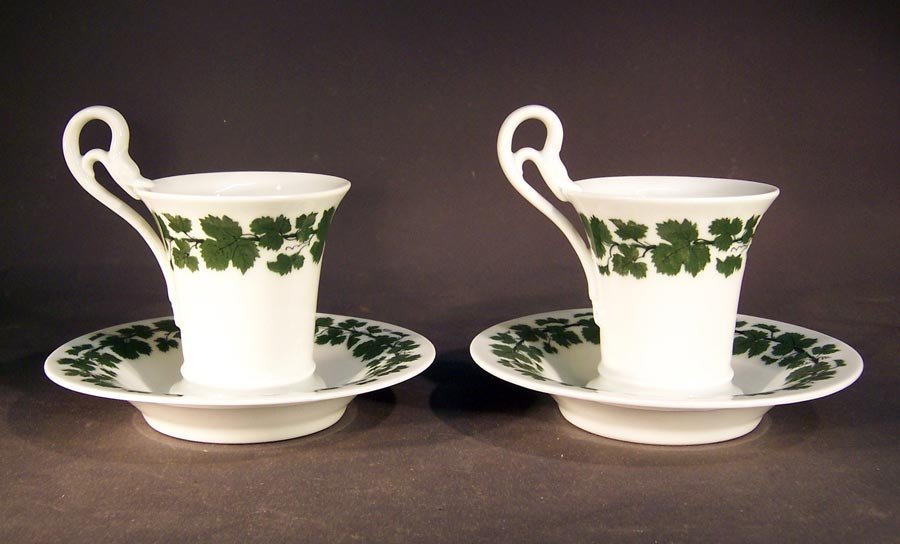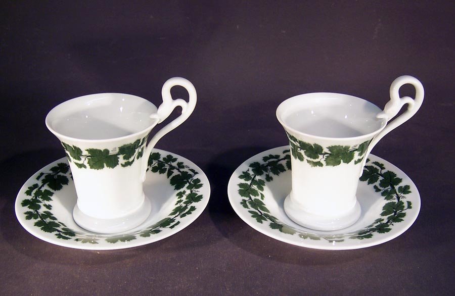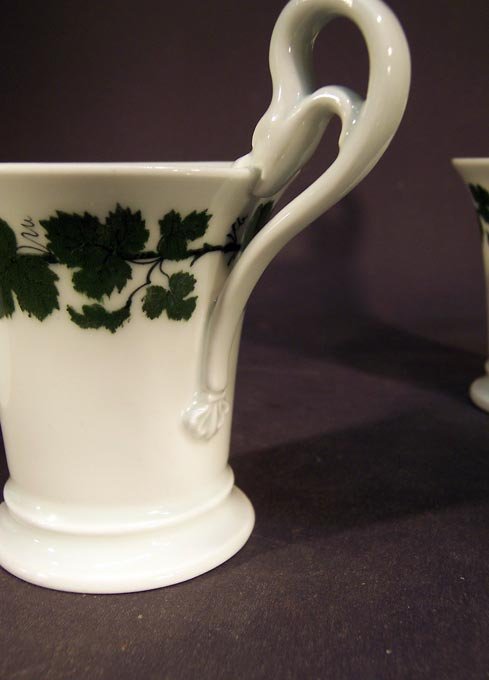 Manufaktur Meissen, Weinlaub; zwei Tassen mit Schwanenhenkel.
