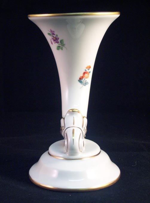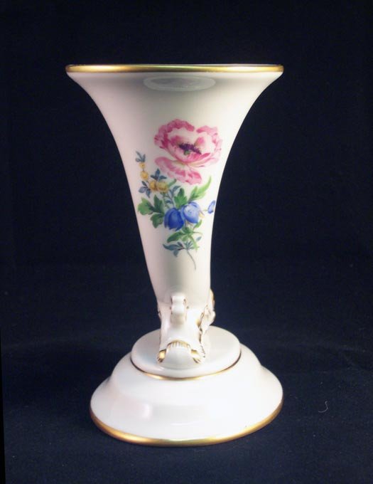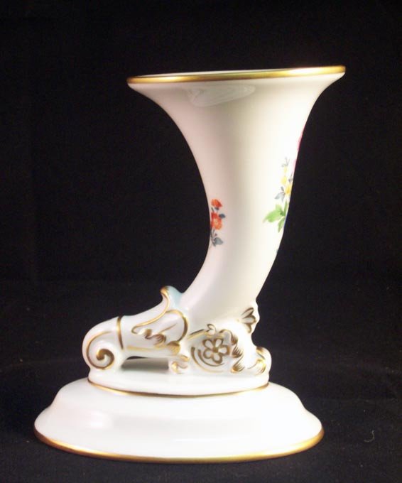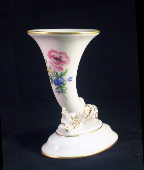 Meissen Füllhorn - Vase mit Blumenmalerei und Gold.