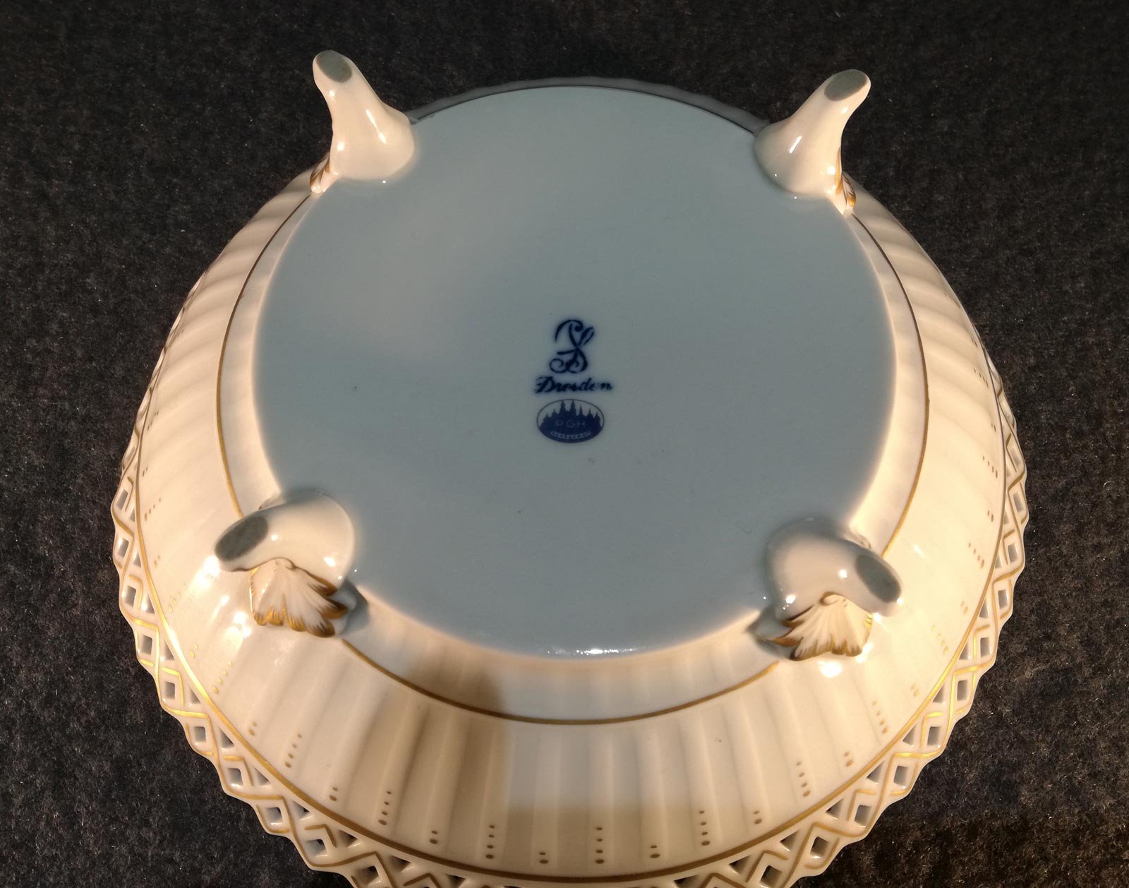 Jardiniere, Fußschale mit Durchbruchrand, Sächsische Porzellanmanufaktur Dresden.