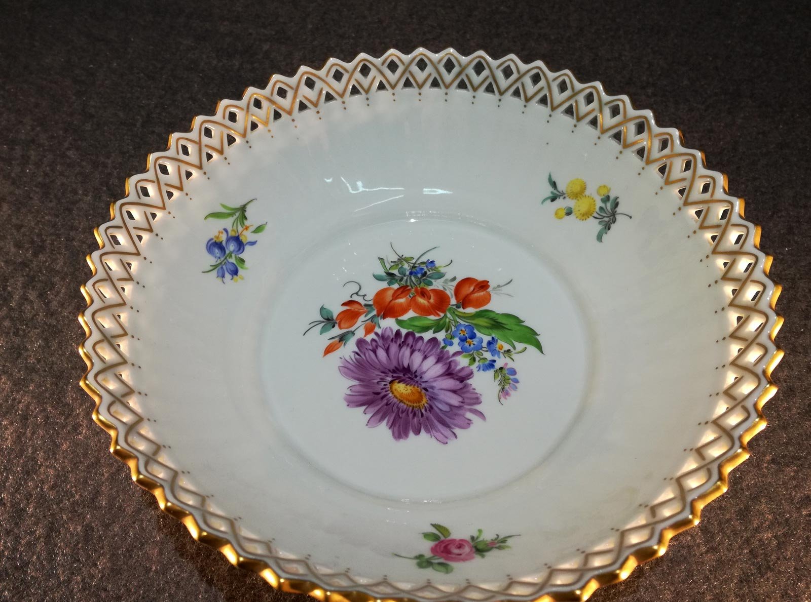Blumenmalerei mit Gold. Reliefierte Wandgung und Füße ebenfalls mit Golddekor.