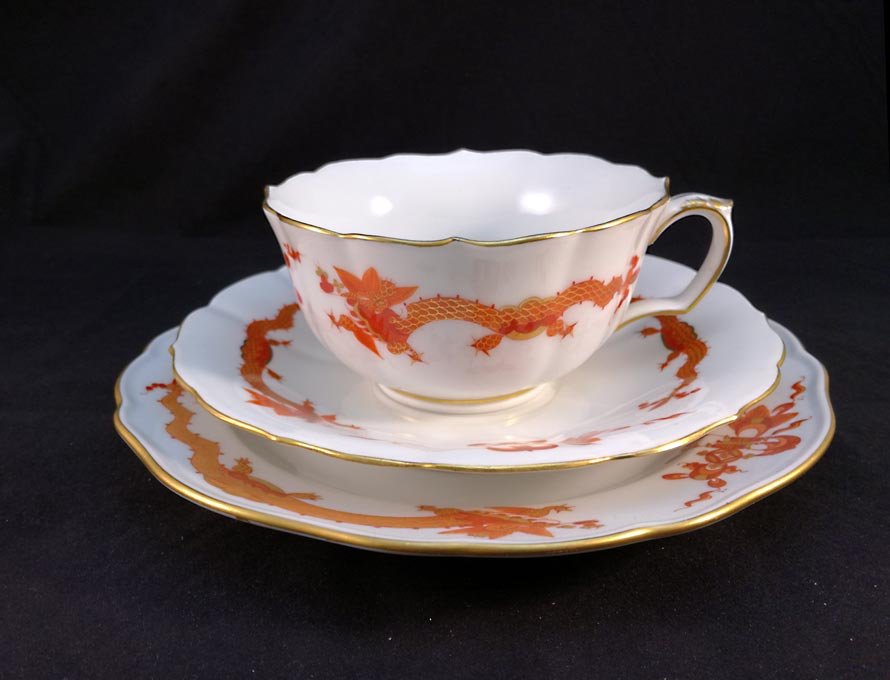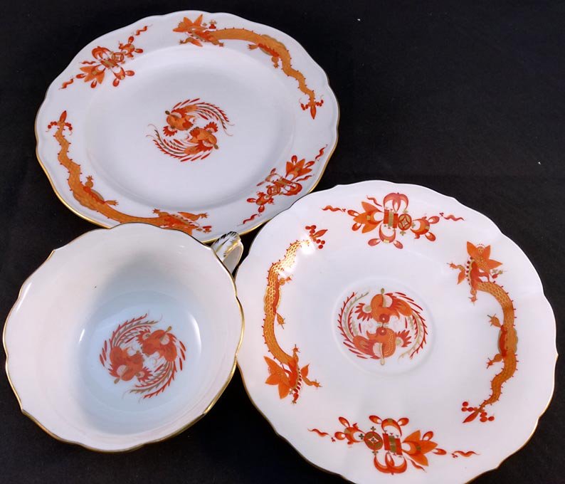Meissen, Roter Drache mit Gold, Gedeck 3tlg.