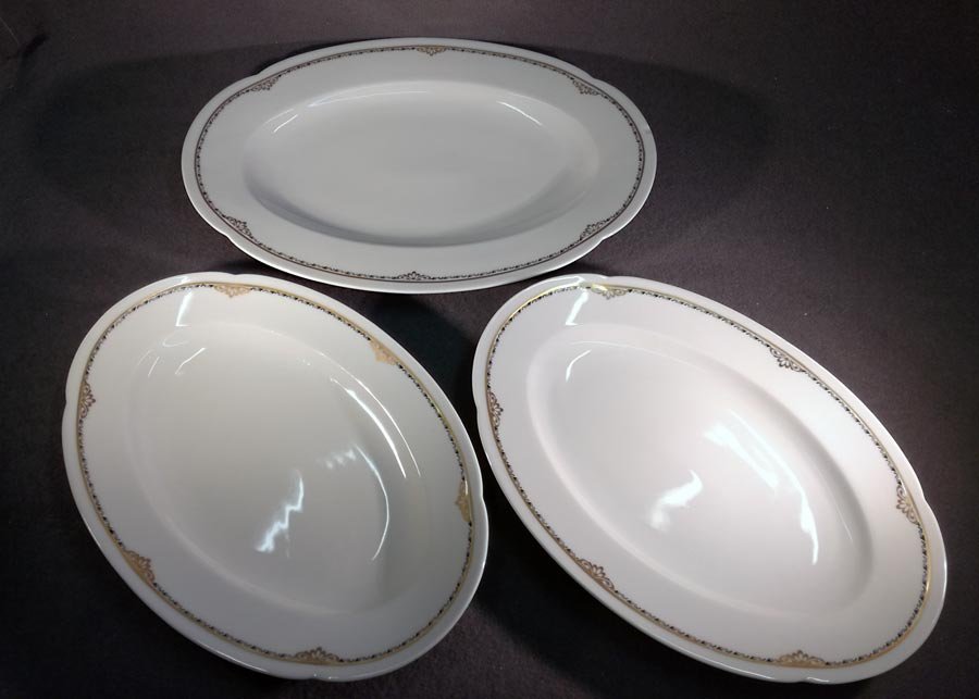 1x Sauciere; 3x Vorlegeplatten, Schalen oval; 1x Deckel einer Terrine , Verkauf auch einzeln, bitte Anfragen.