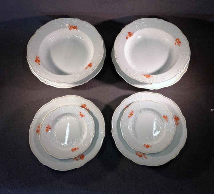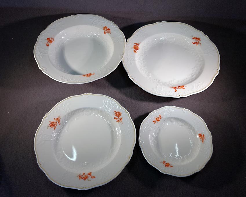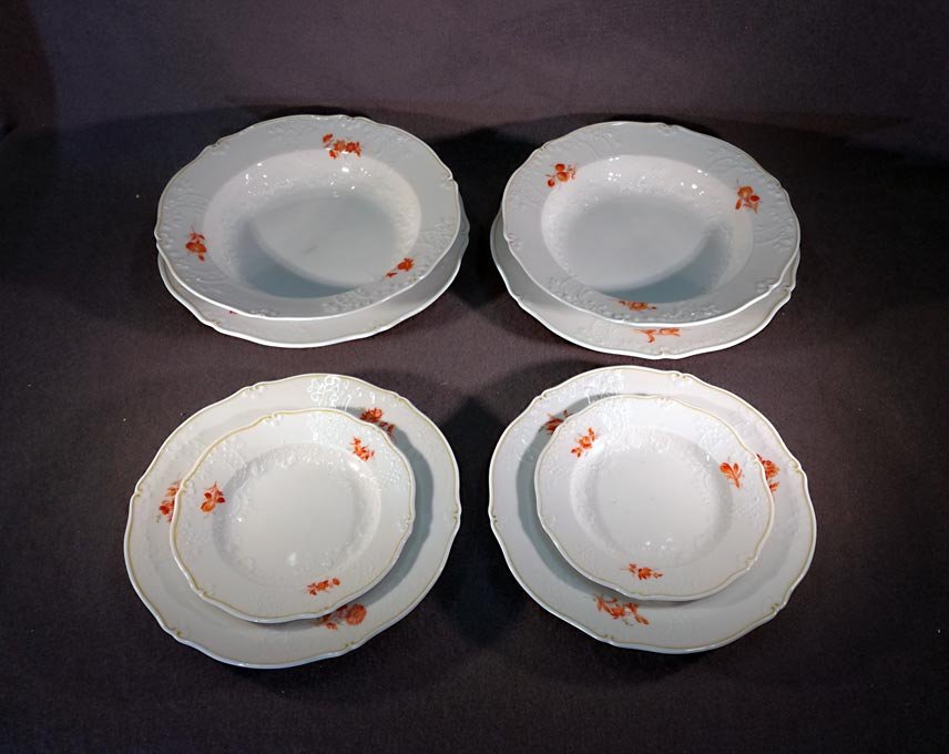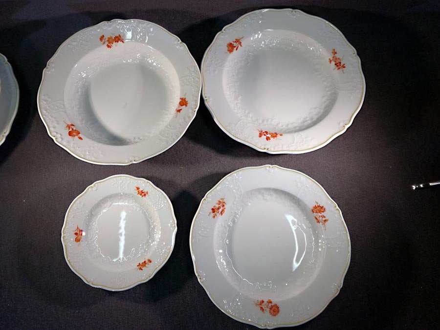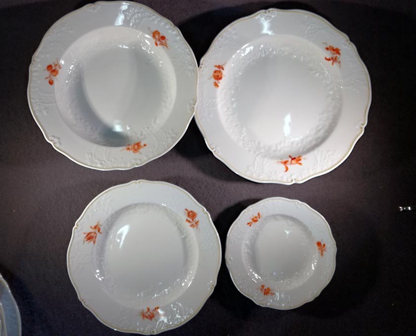 Zwei Speisegedecke je 4 Teile bestehend aus je: 3 flache Teller klein, mittel, groß sowie 1großer Suppenteller. insgesamt 8 Teile.