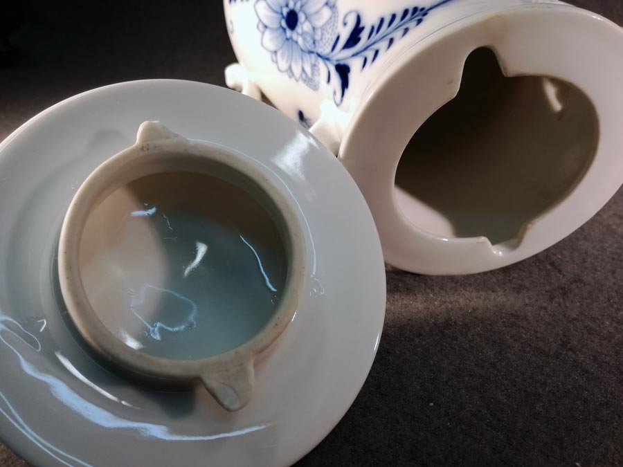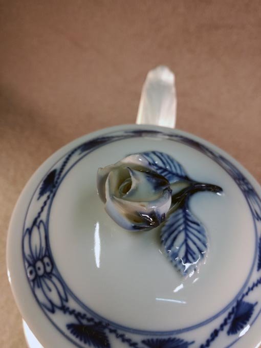 H. ca 25 cm (mit Deckel). Teichertmarke: Blau "Meissen" im Oval