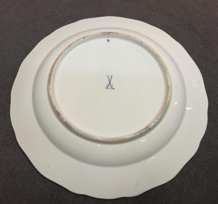 Meissen Schwertermarke 1. Wahl, Knaufschwerter vor 1920. D. 25 cm.