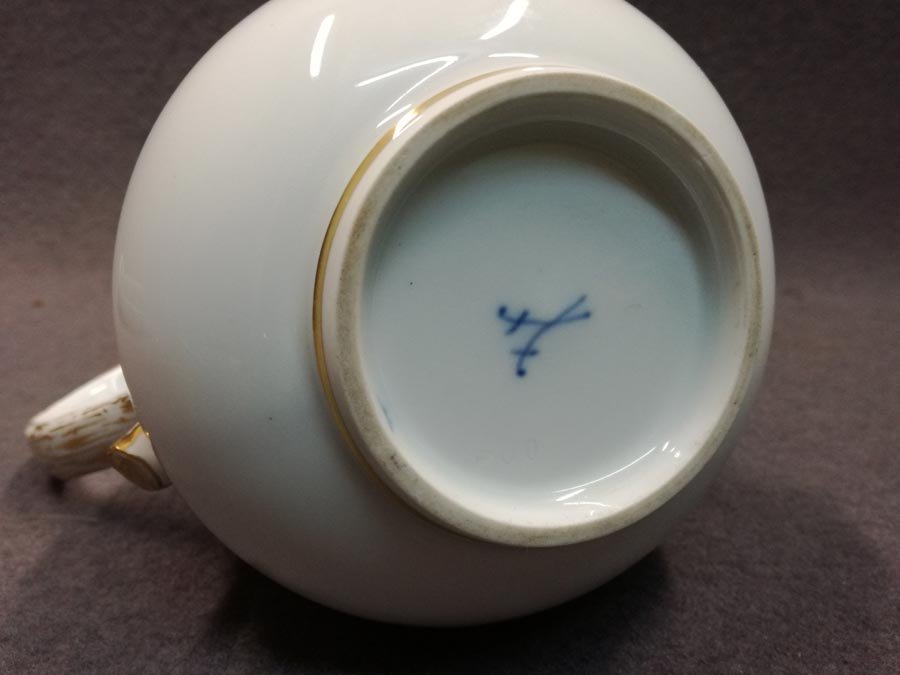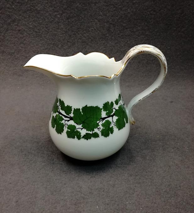 Meissen, große Kanne, Milchkanne um 1880. Weinlaub mit Gold.