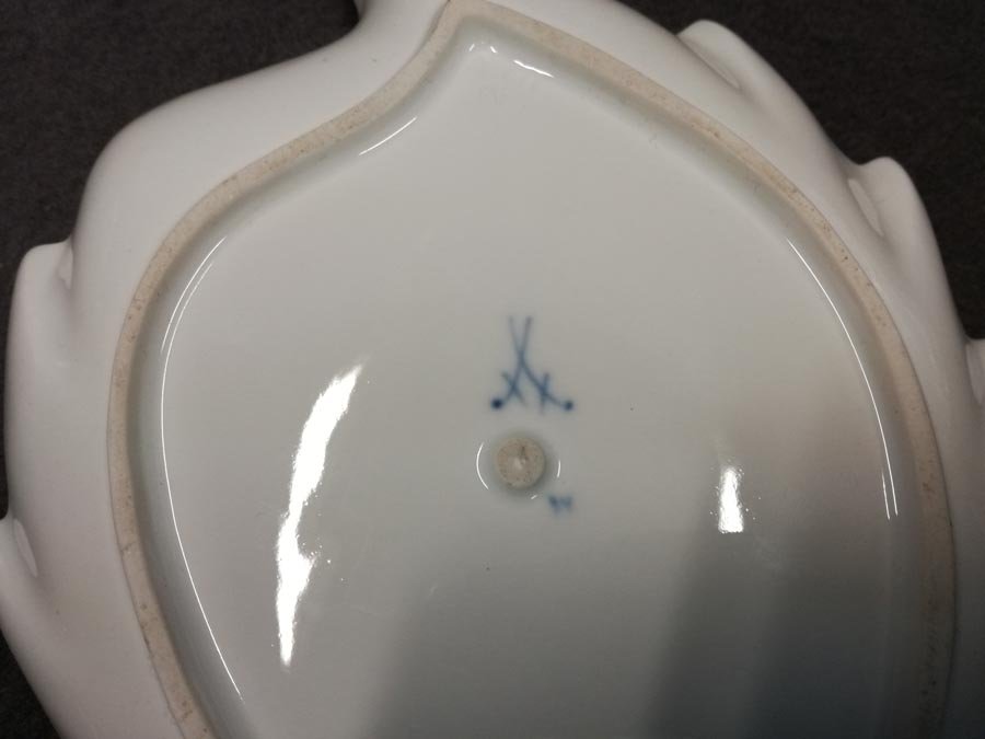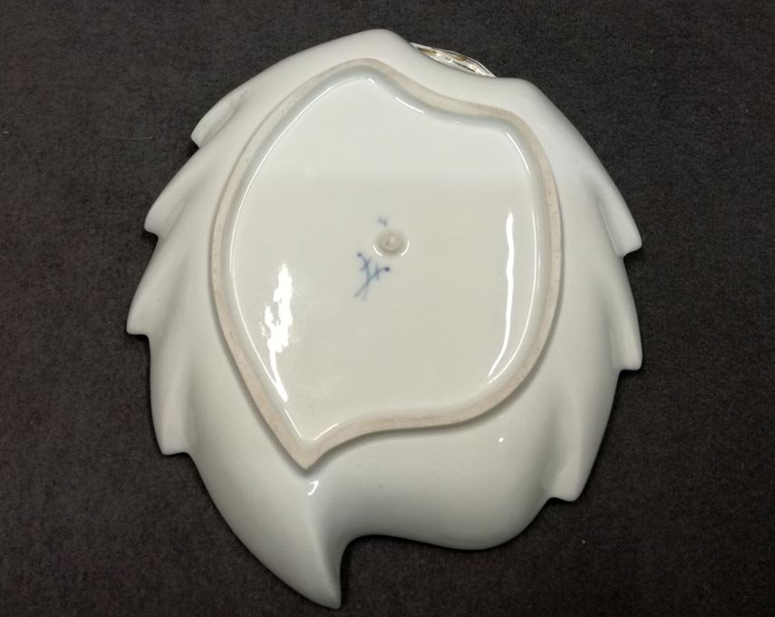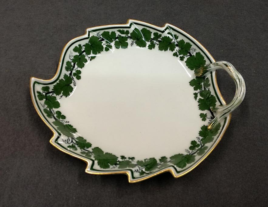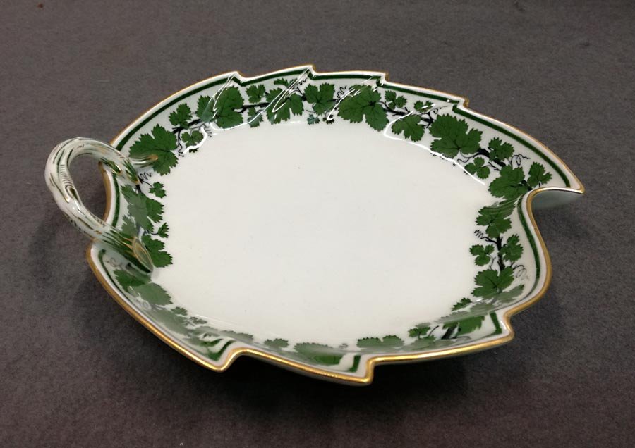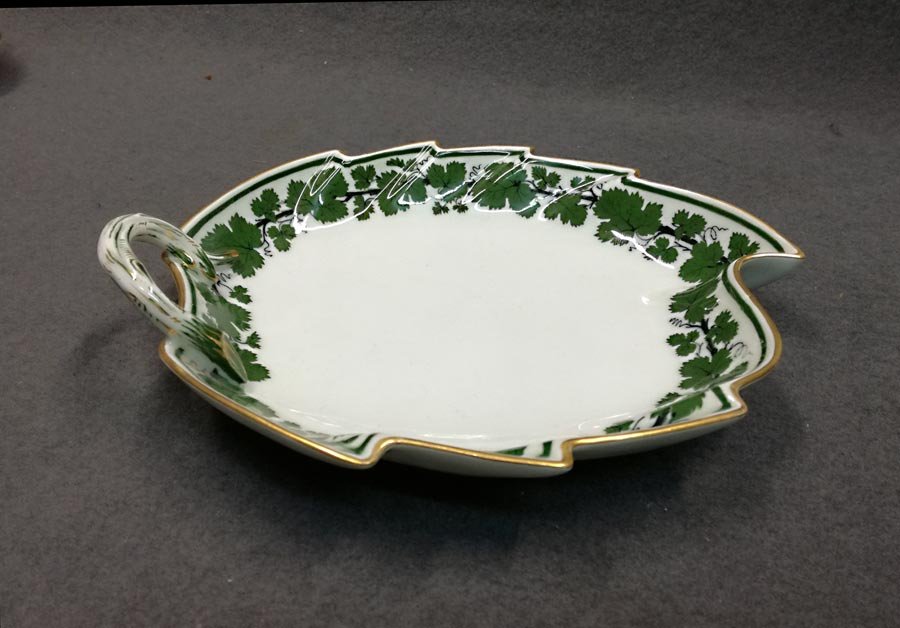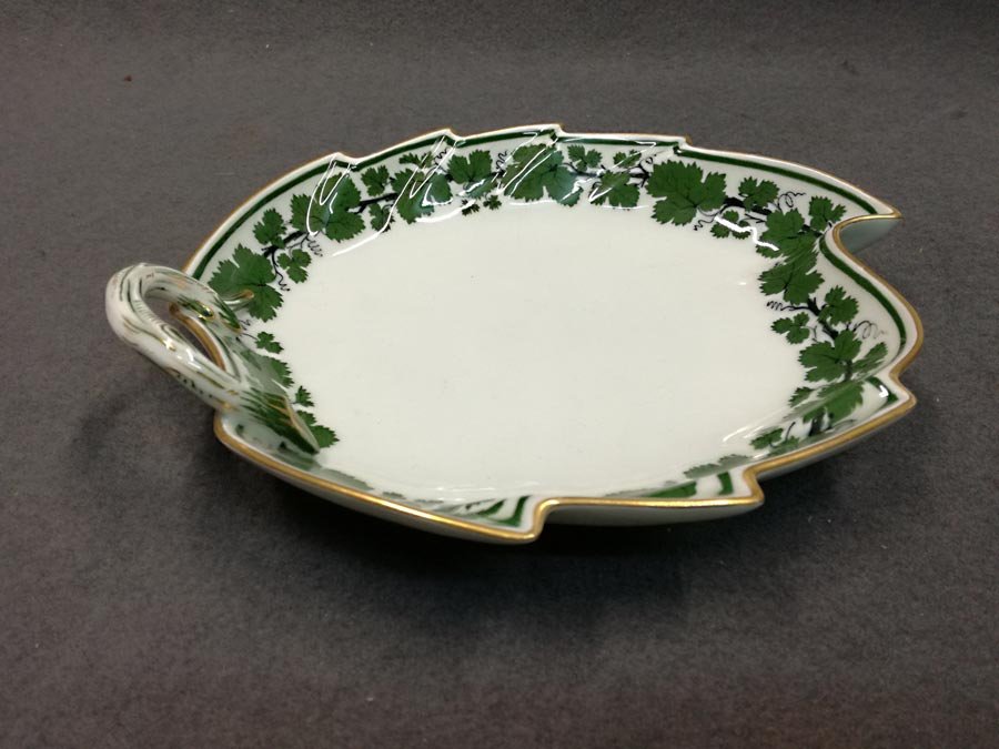 Meissen, Weinblatt, große Blattschale um 1880. Weinlaub mit Gold.