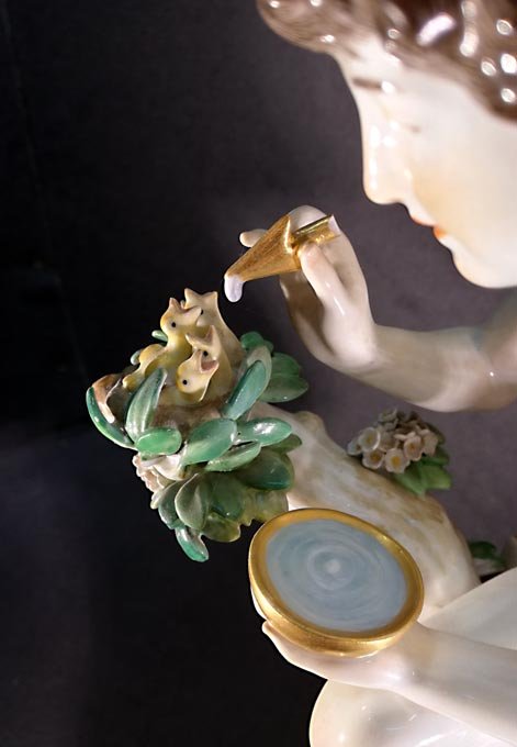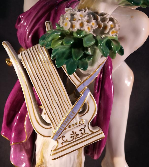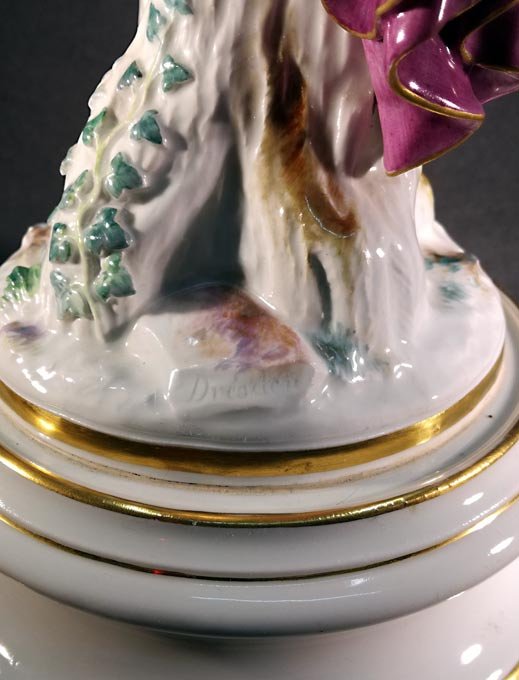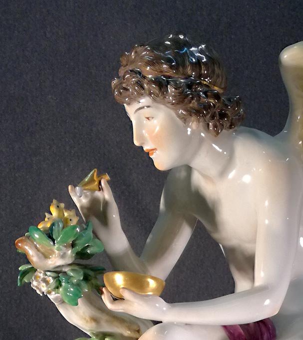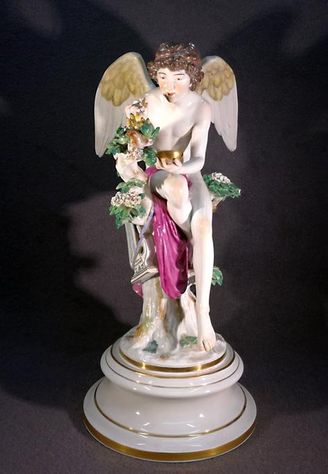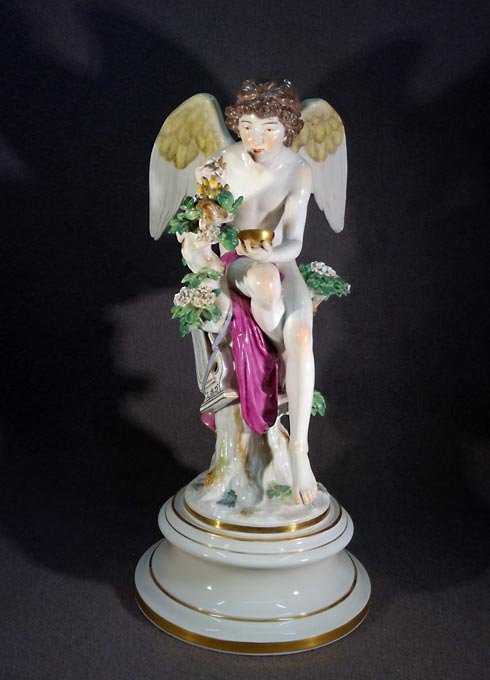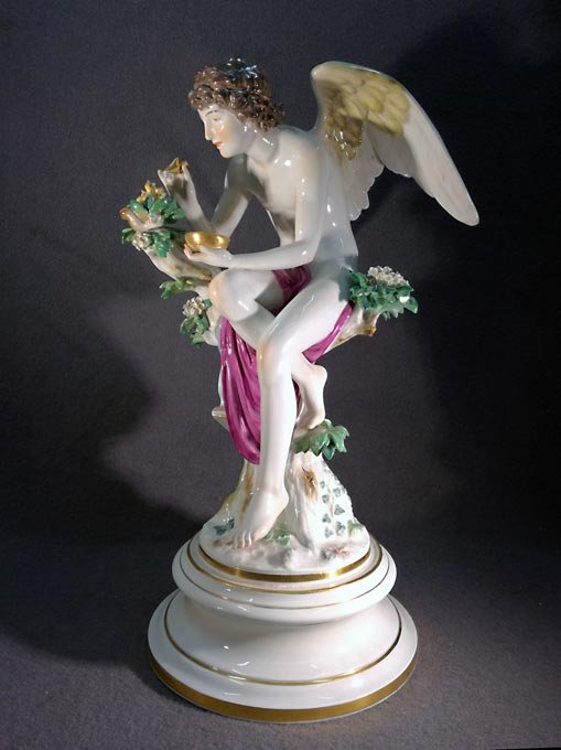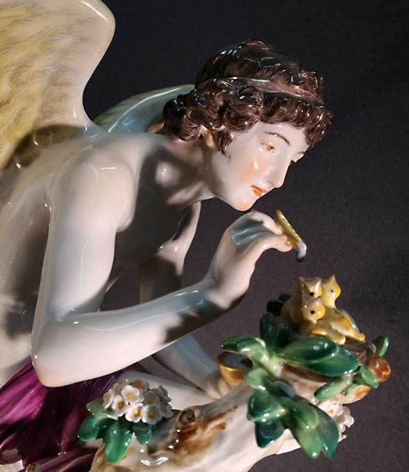 Meissen, große Plastik "Amor die Nachtigallen fütternd" , seltene Figur von Rudolph Hölbe. H. 41,5 cm. 1.Wahl.