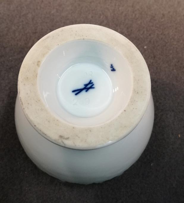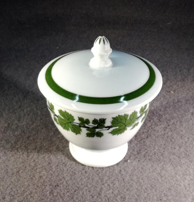 Meissen; Zuckerdose, Weinlaubdekor. H. 11 cm