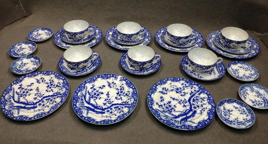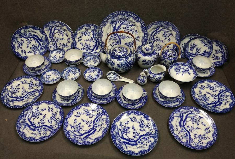 Teeservice Japan, Kirschblüte. Sehr umfangreich, 40 Teile, für 7 Personen.