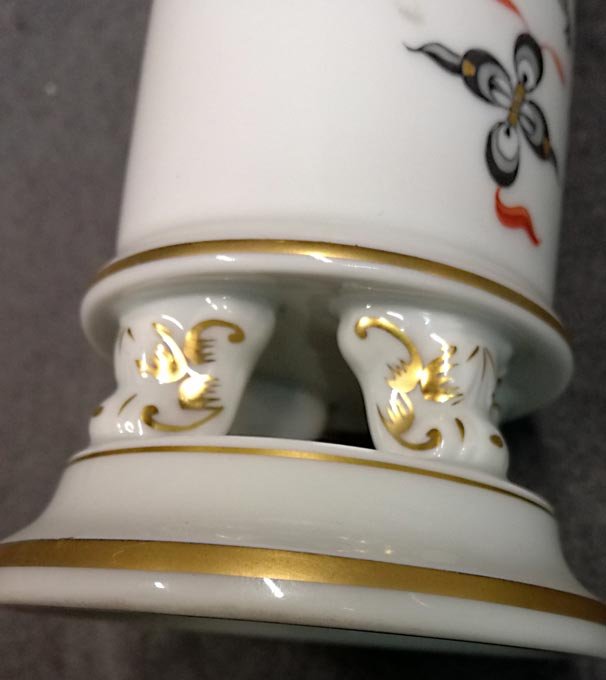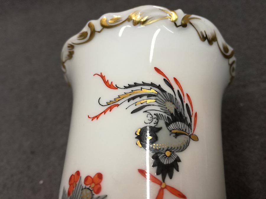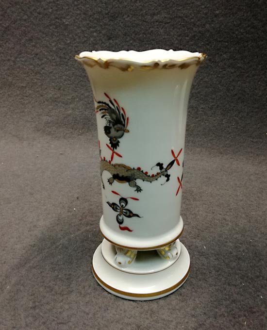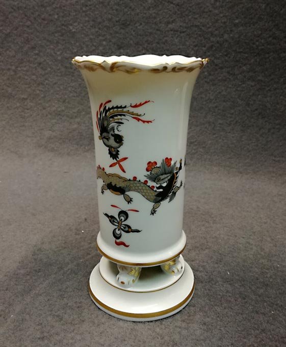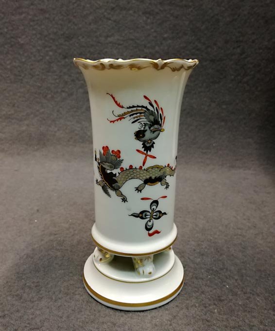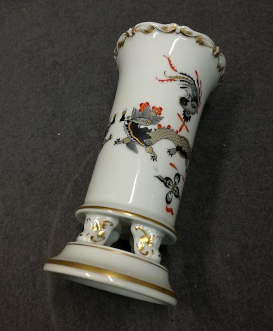 Meissen; kleine Vase auf Füßchen, reicher Drache goldgeschuppt.