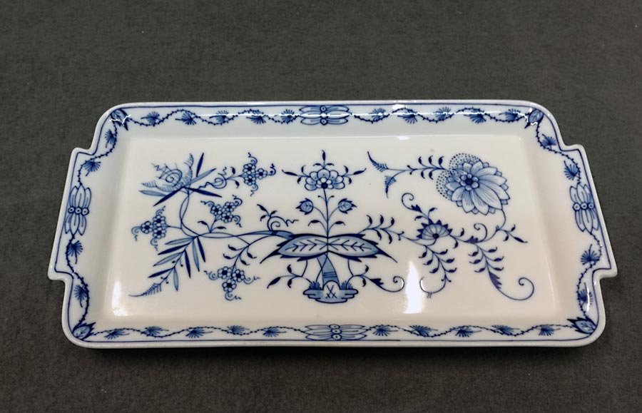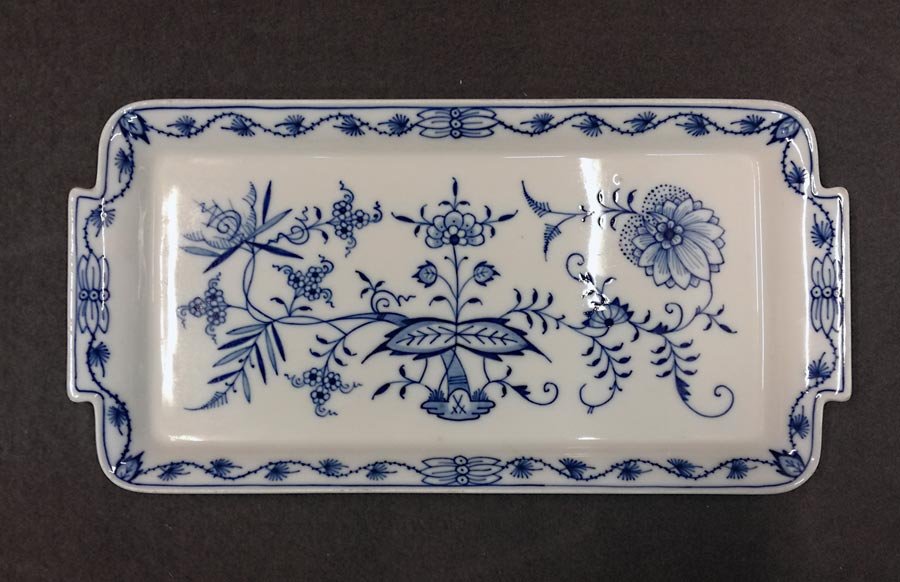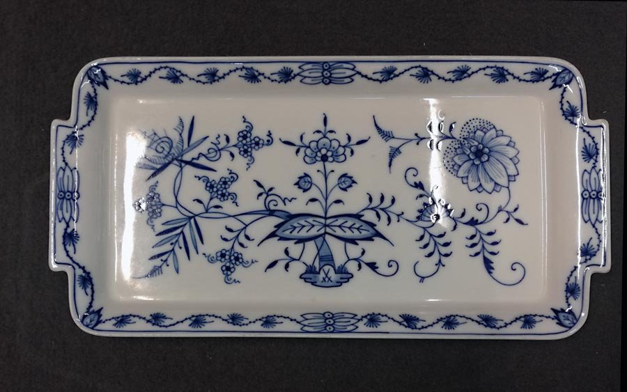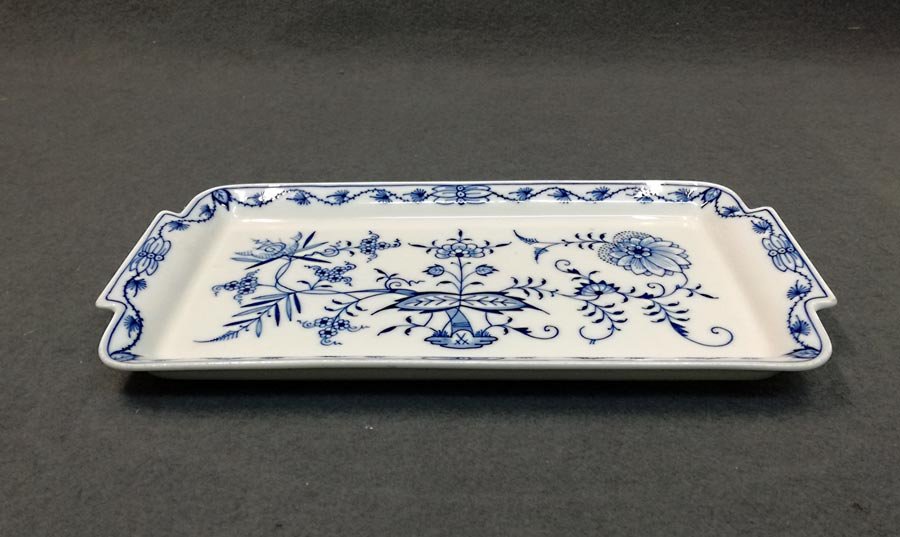 -Meissen, Zwiebelmuster; rechteckige Platte, Kuchenplatte, Tablett mit Handhaben.