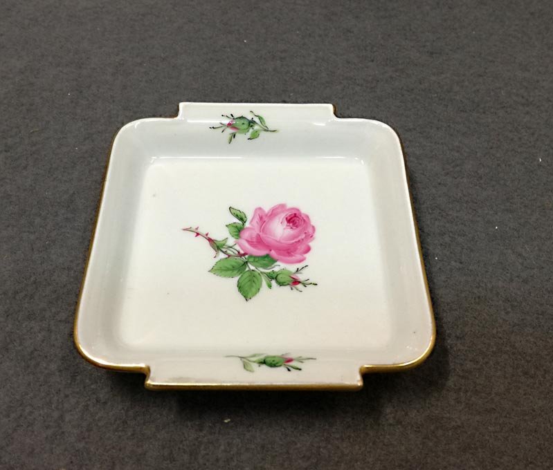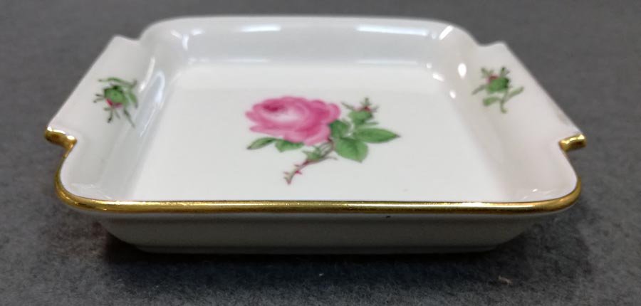 Meissen kleine Schale, Rote Rose, Goldrand