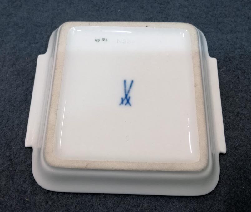 Blaue Schwertermarke, 2x Schleifstriche.