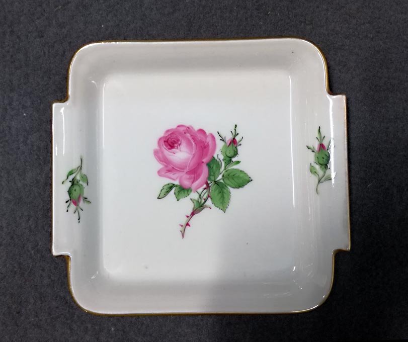 Kleine Schale, Rote Rosen und Goldrand.