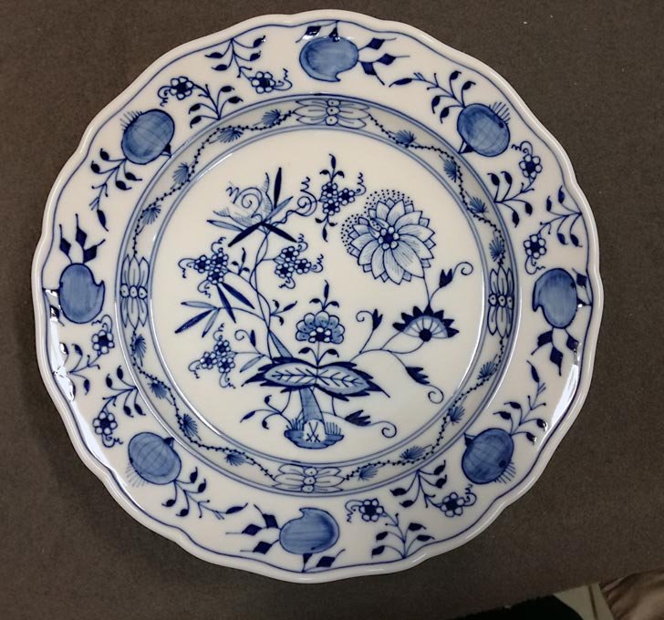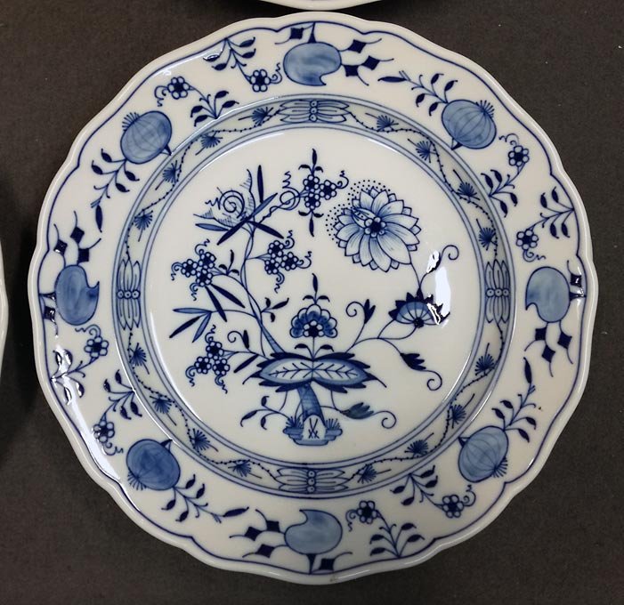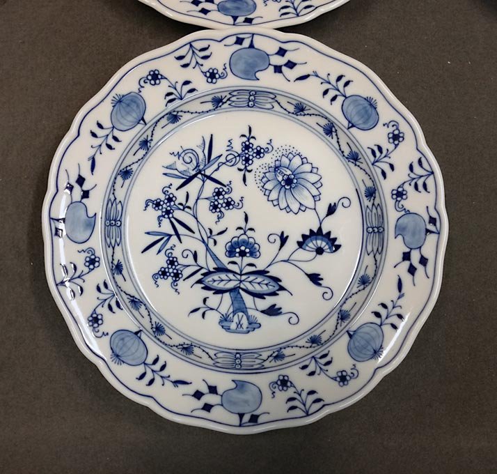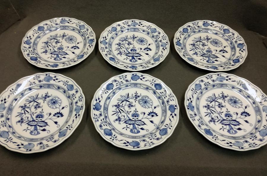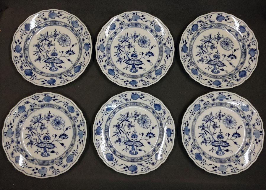 Meissen, Zwiebelmuster, 6 große Speiseteller. D. 25,3 - 25,5 cm.