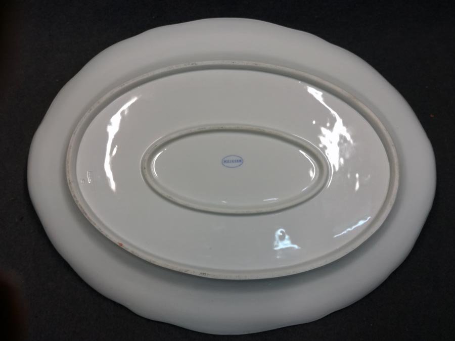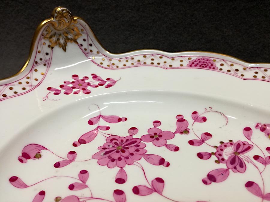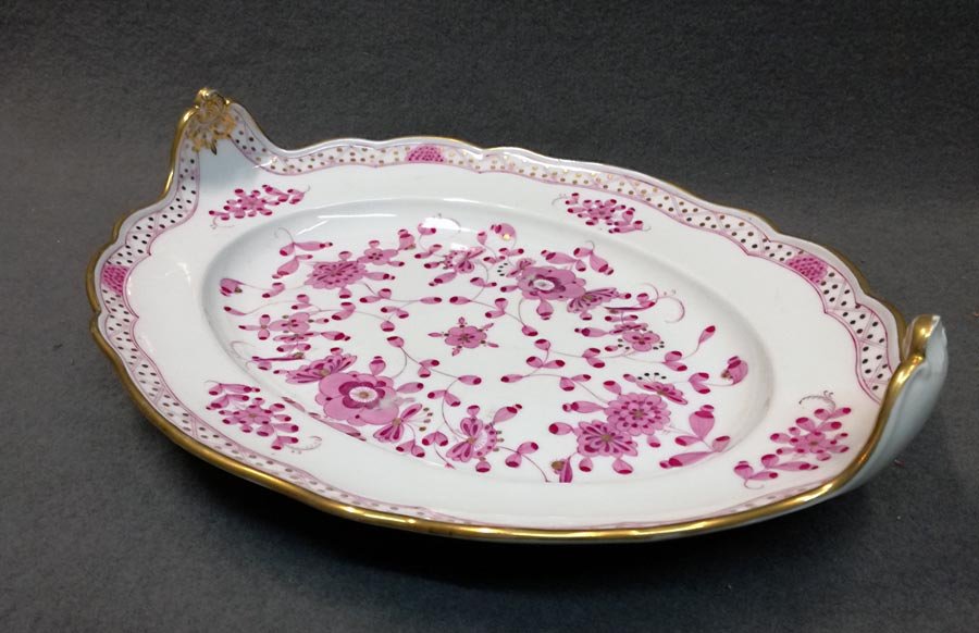 Teichert in Meißen, Indisch Purpur Große Schale/Platte mit Muschelhandhaben