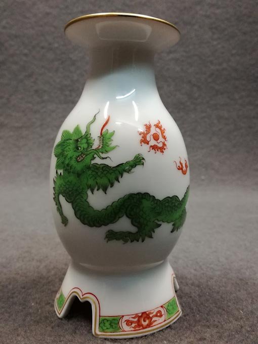 Meissen; Kerzenleuchter, Grüner Drache mit Goldrändern.