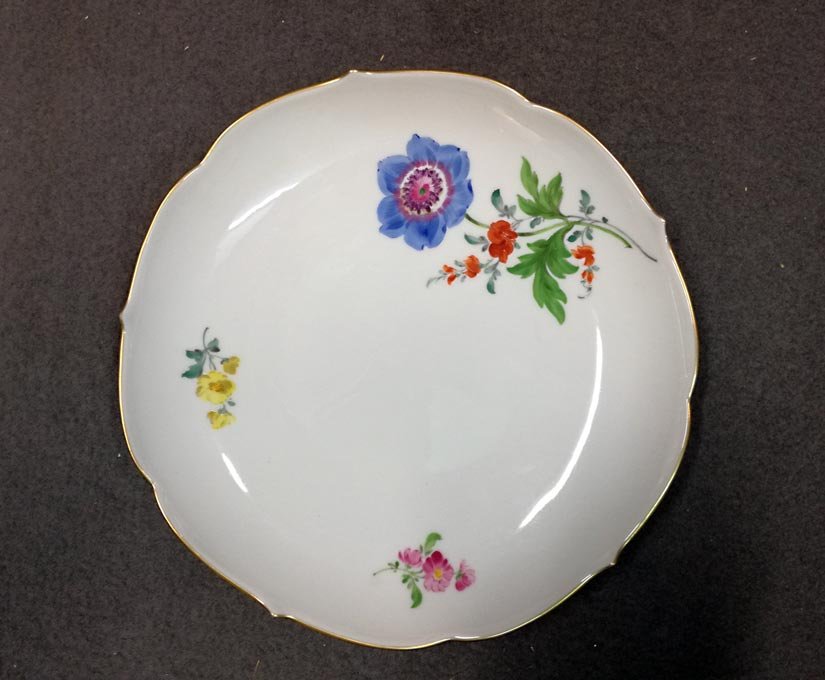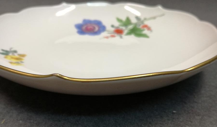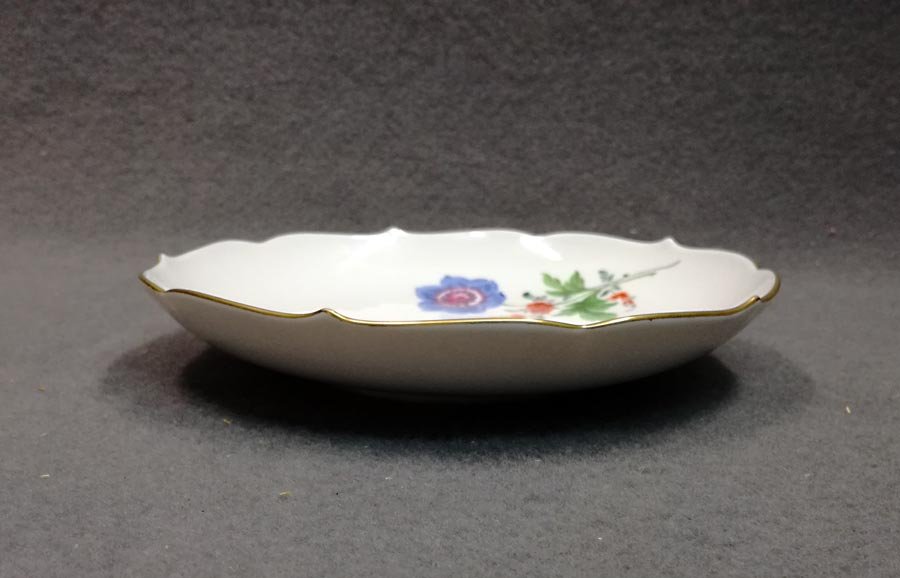 Meissen, Schale mit Blumenmalerei und Goldrand, der Rand geschwungen.