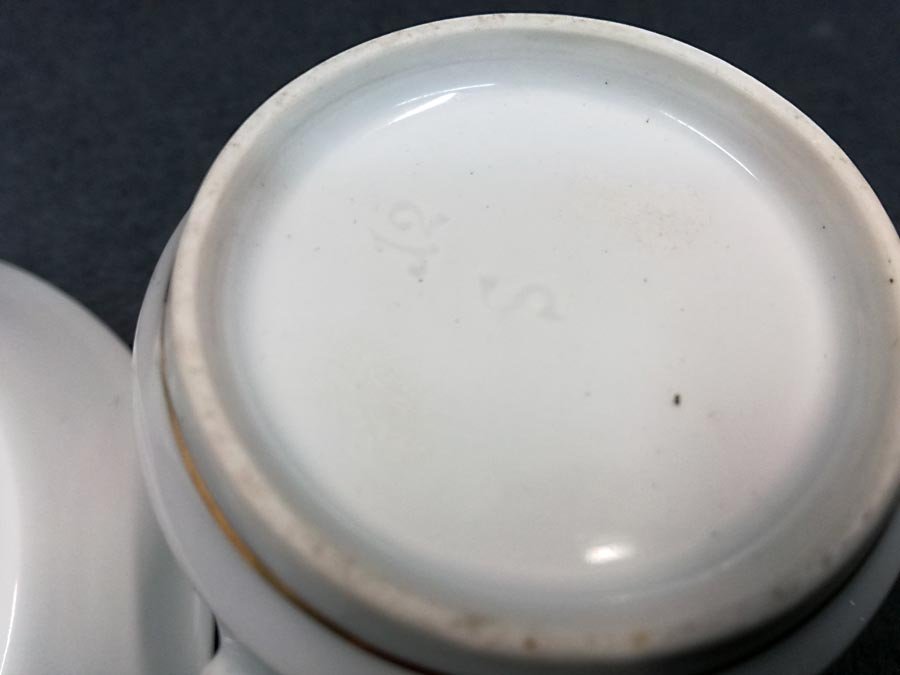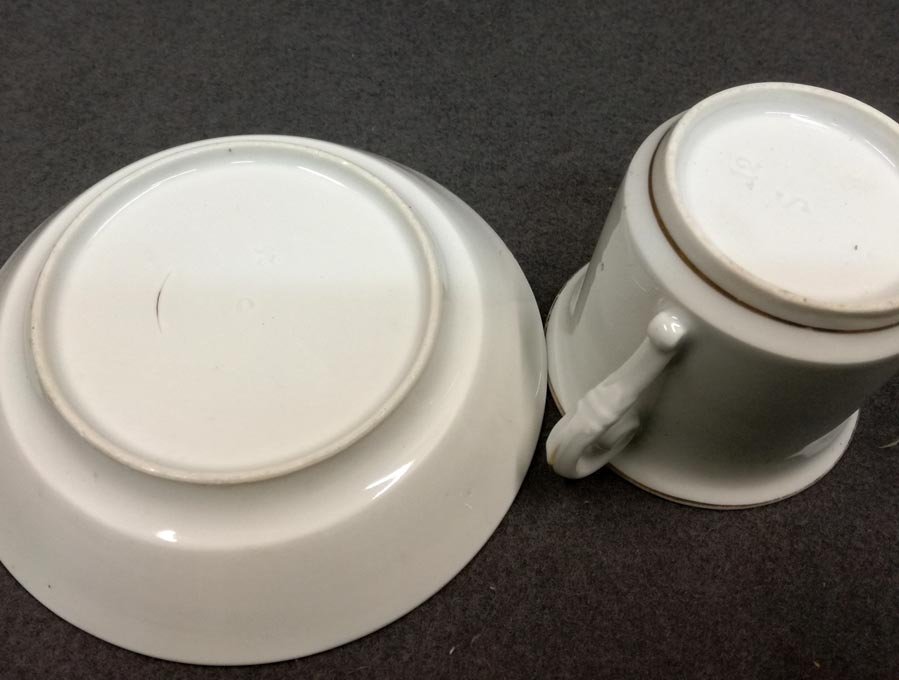 Tasse: H. 6,3 cm, D. 7,4 cm; Teller H. 2,8 cm, D. 13,6 cm