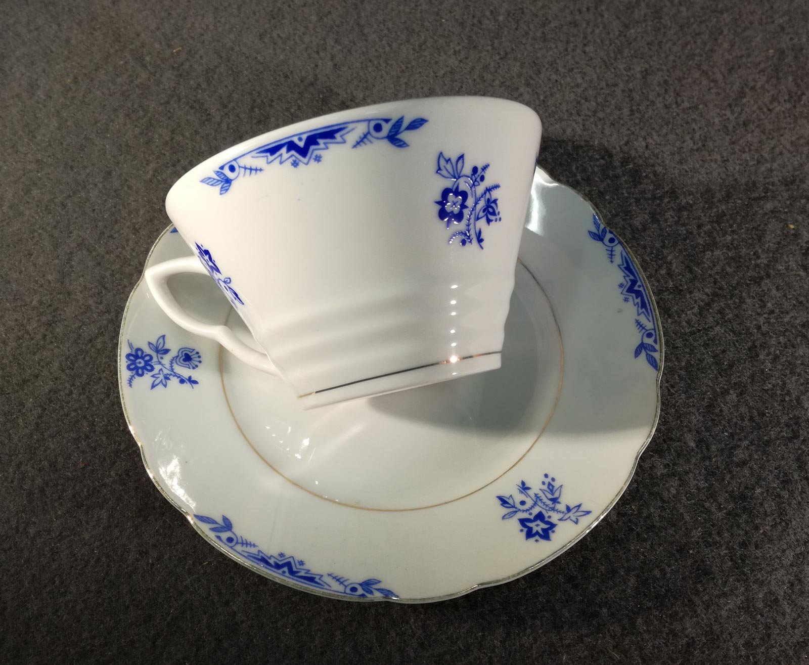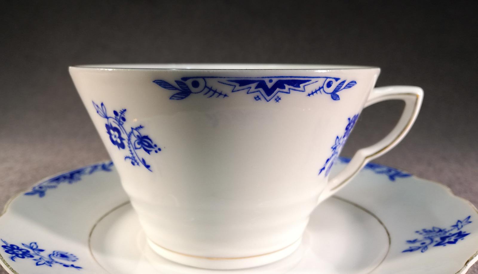 Hutschenreuther,Tasse mit Untertasse. Art Deco Form und Dekor.
