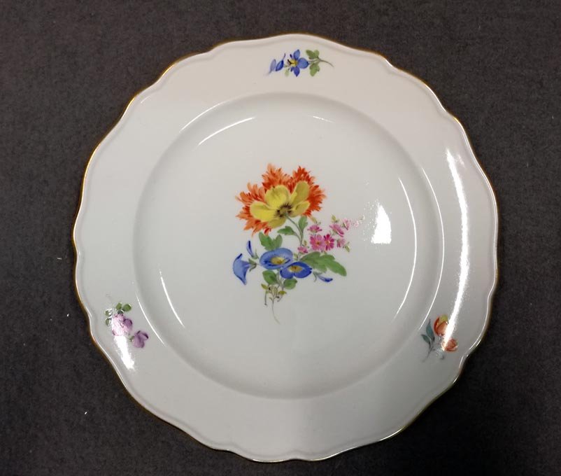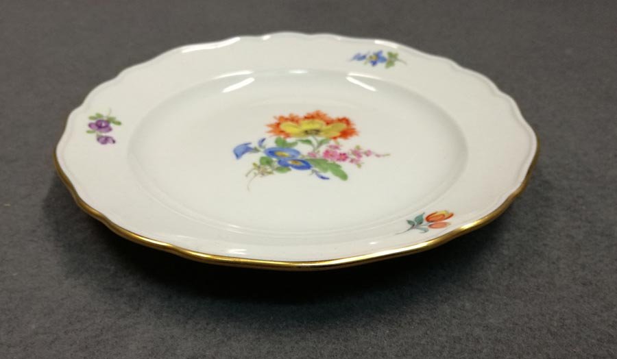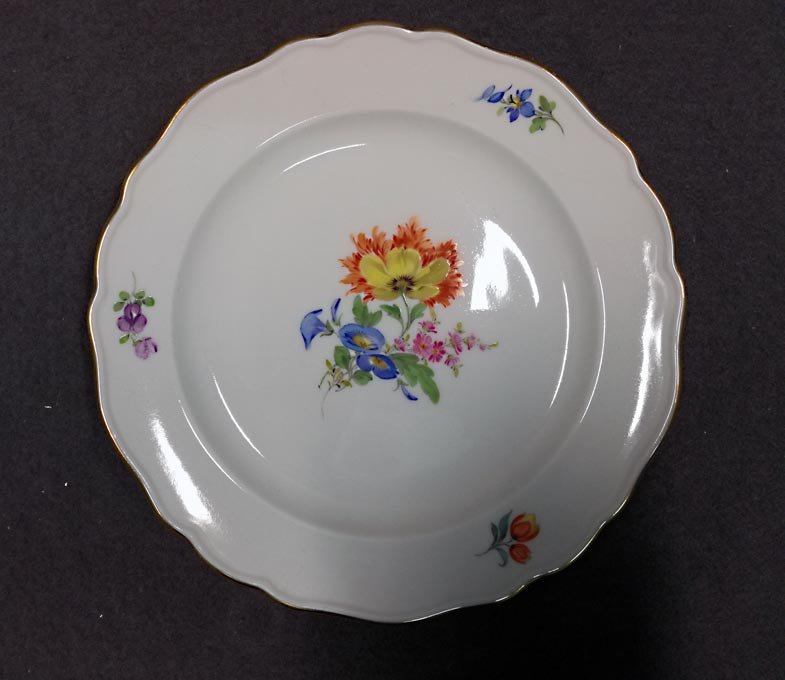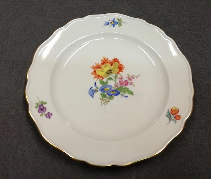 Manufaktur Meissen, Teller mit Blumenmalerei, reiches Blumenbukett mit Goldrand.