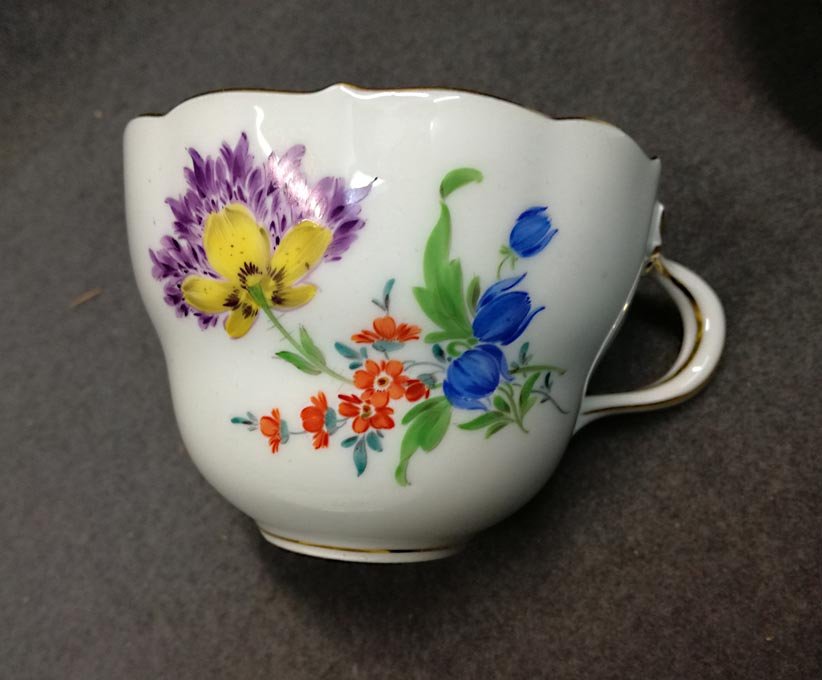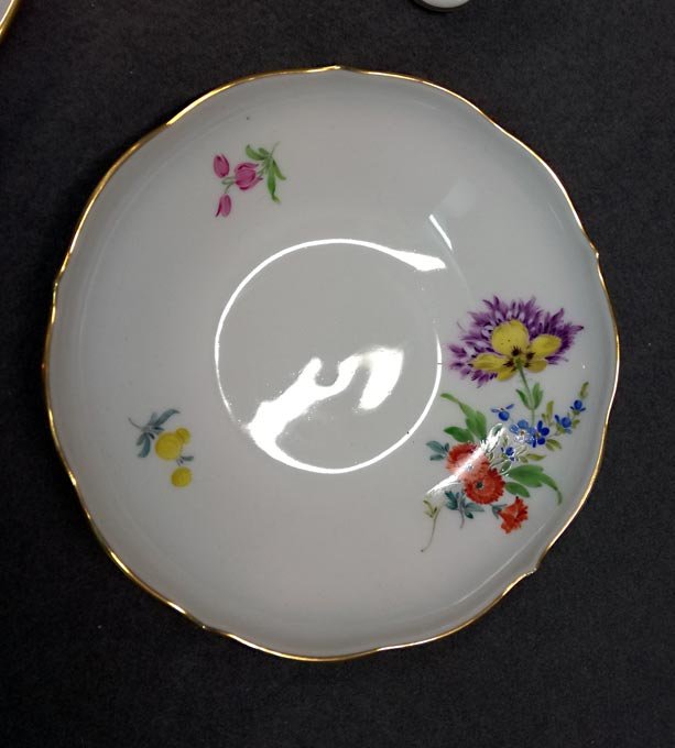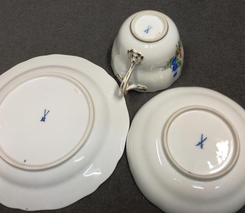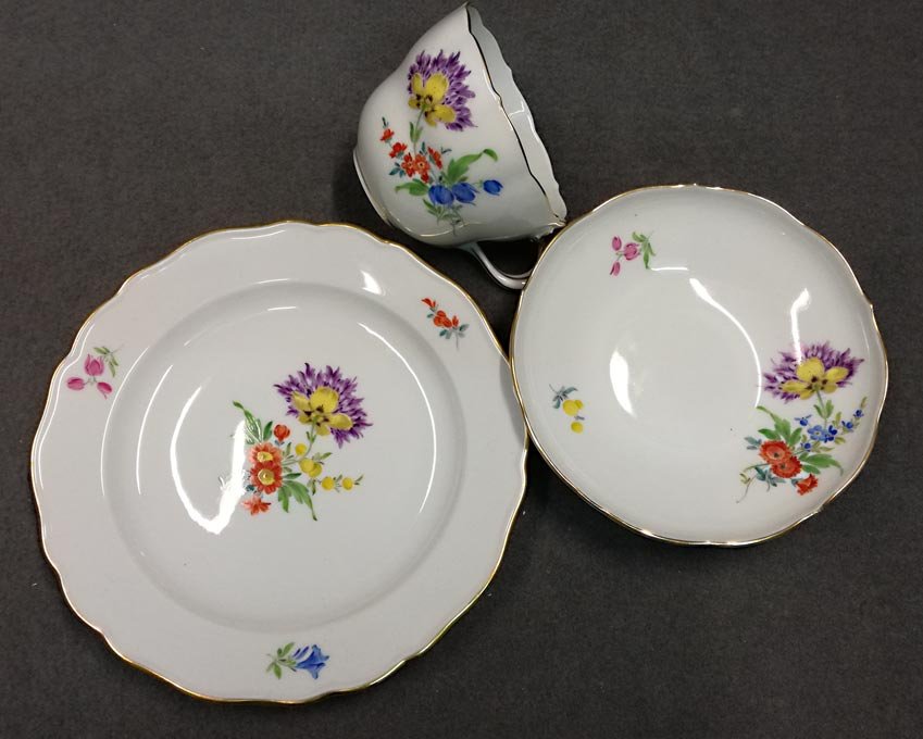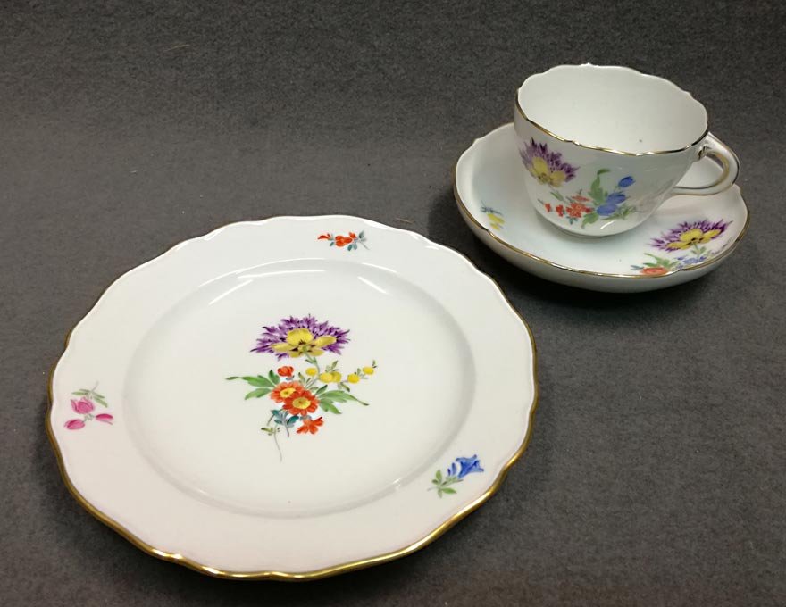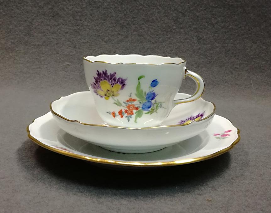 Reserviert! Meissen, Kaffeegedeck 3tlg., Blumenmalerei + Gold