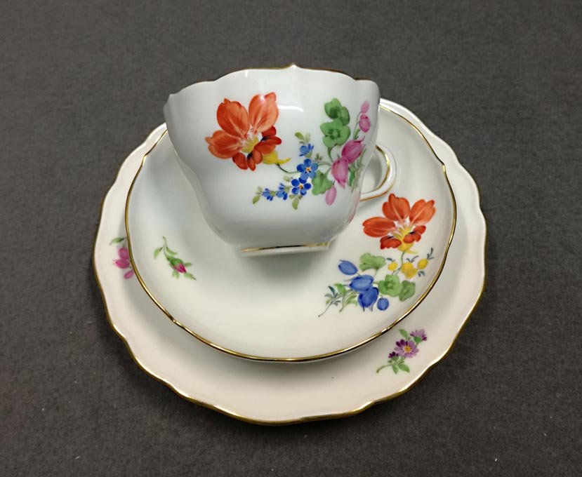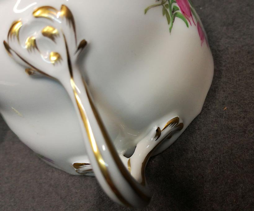 Blumenbukett; mit Goldrändern, astartiger Henkel goldverziert.