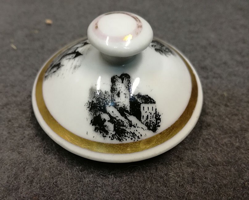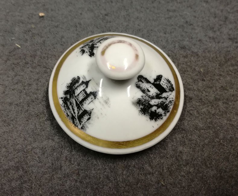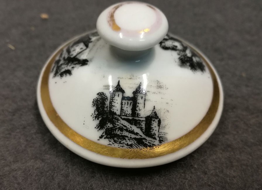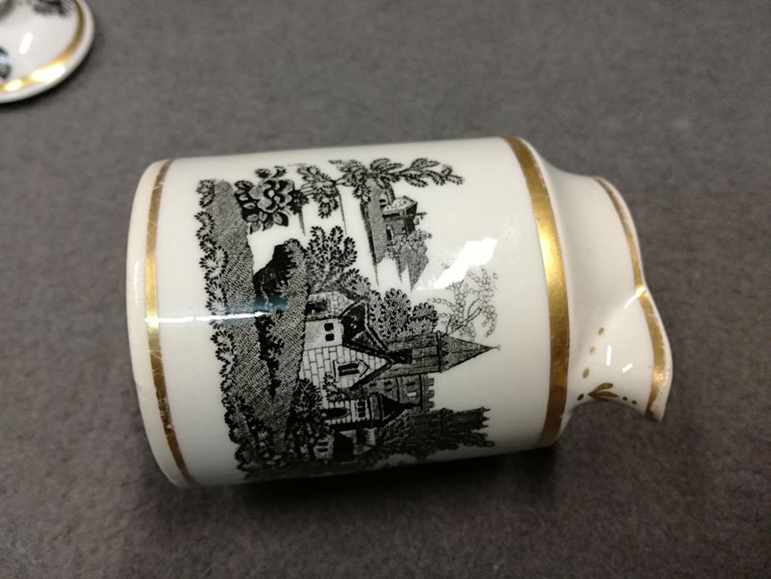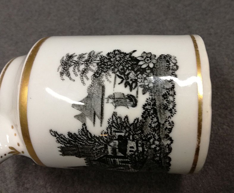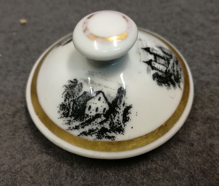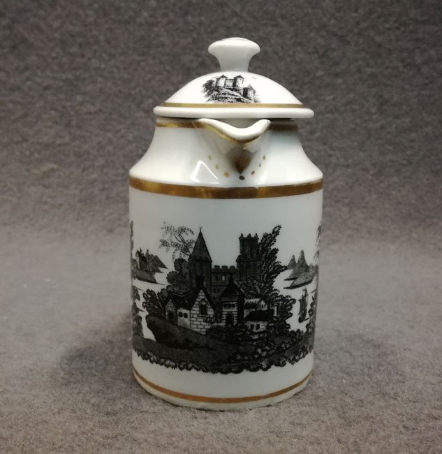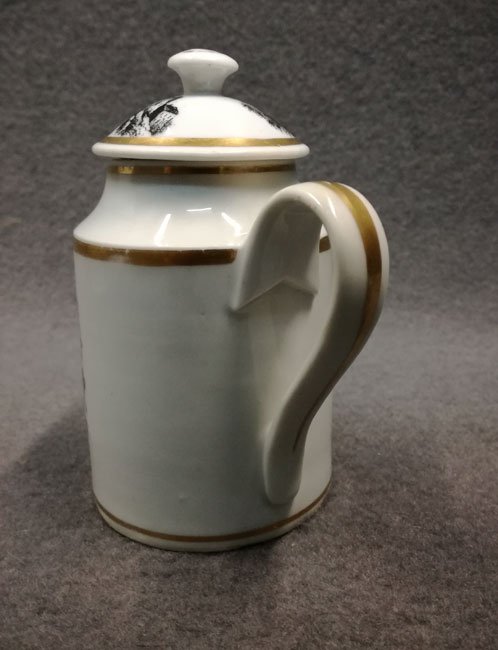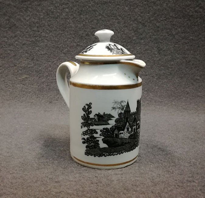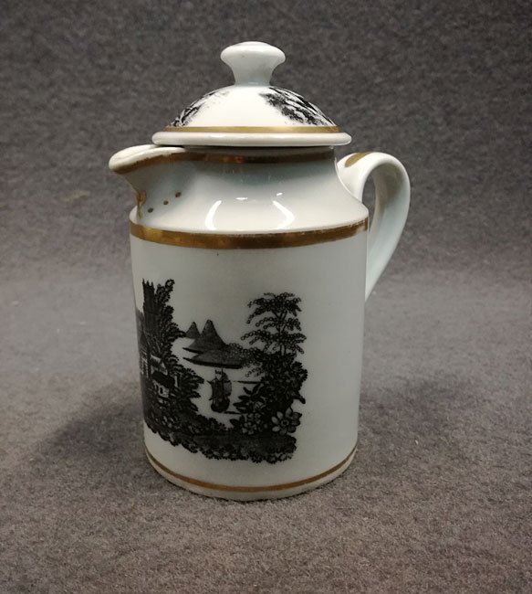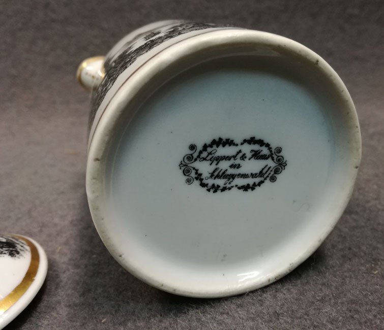 Reserviert! Schlaggenwald, Lppert & Haas um 1840, kleines Kännchen mit Schwarzlotmalerei.