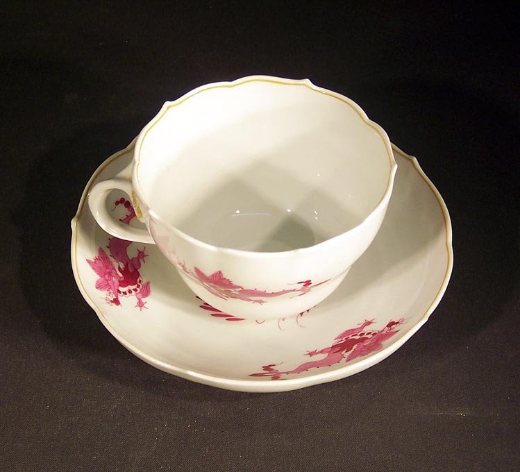 Tasse mit Untertasse, Purpurdrache Meissen.
