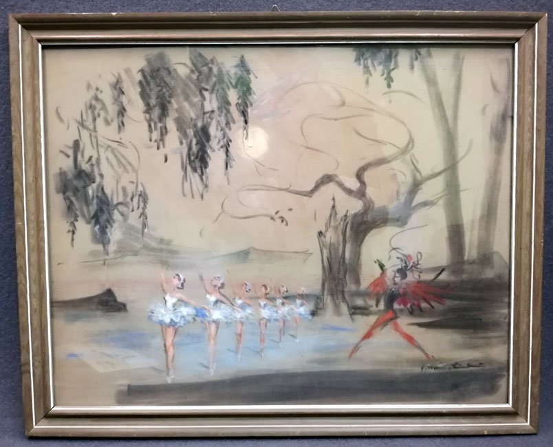 Theaterszene, Pastellkreide auf Papier. U.re. signiert "E. Sturm-Lindner".