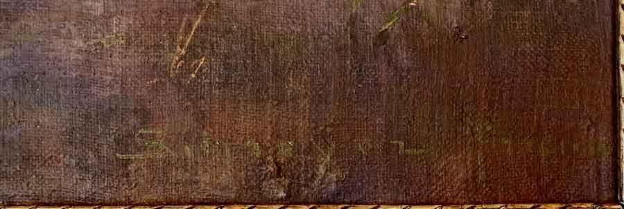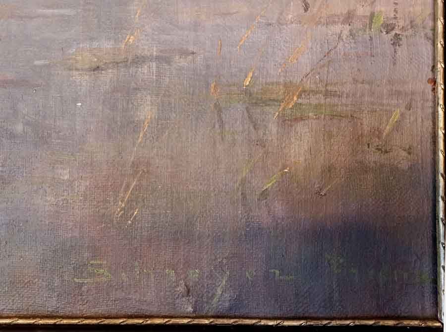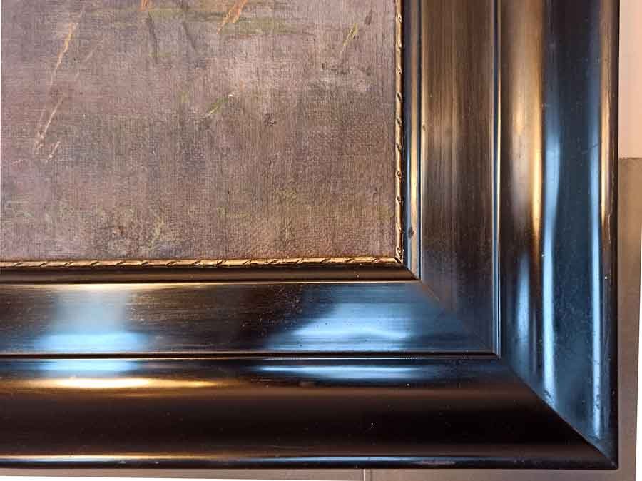 Großes Ölbild in breiter Leiste, zeittypisch ebonisiert.