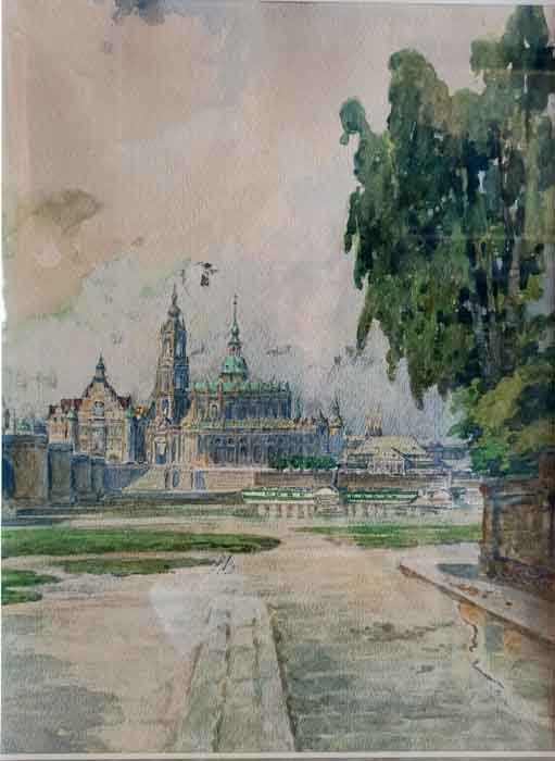 Schreyer, Oskar Dreden, Blick auf die Hofkirche, Aquarell