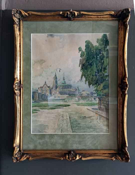 Oskar Schreyer, Dresden, Blick auf die Hofkirche. Aquarell. Im Passepartout, gerahmt hinter Glas.