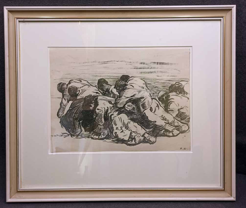 Lithografie im Stein monogramiert "R. St." . Blatt:  41 x 30 cm  Rahmen: 67 x 56 cm.