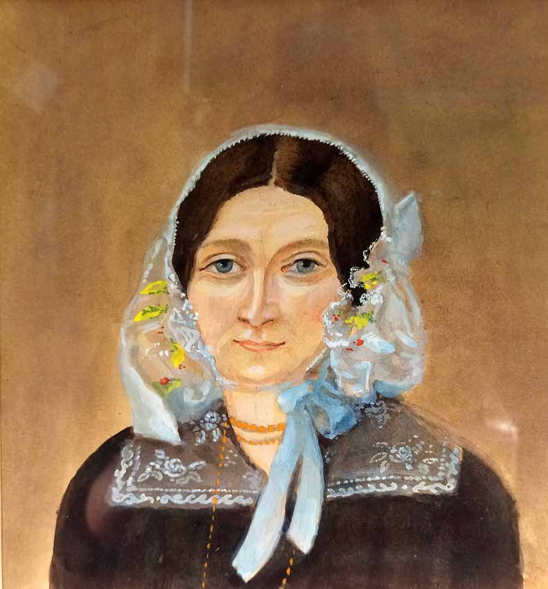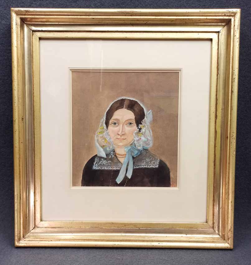 Zwei Portraits eine Paares 1.H.19.Jh.; Etwas naive, ländliche Malerei. Aquarell und Pastell, in Passepartout und Berliner Leiste gerahmt. Schöner Original Zustand.